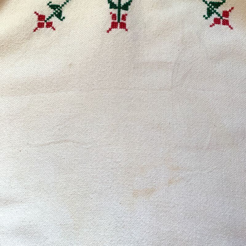 点のようなシミや薄茶色のシミ、生地に若干の経年によるクセが見られます。