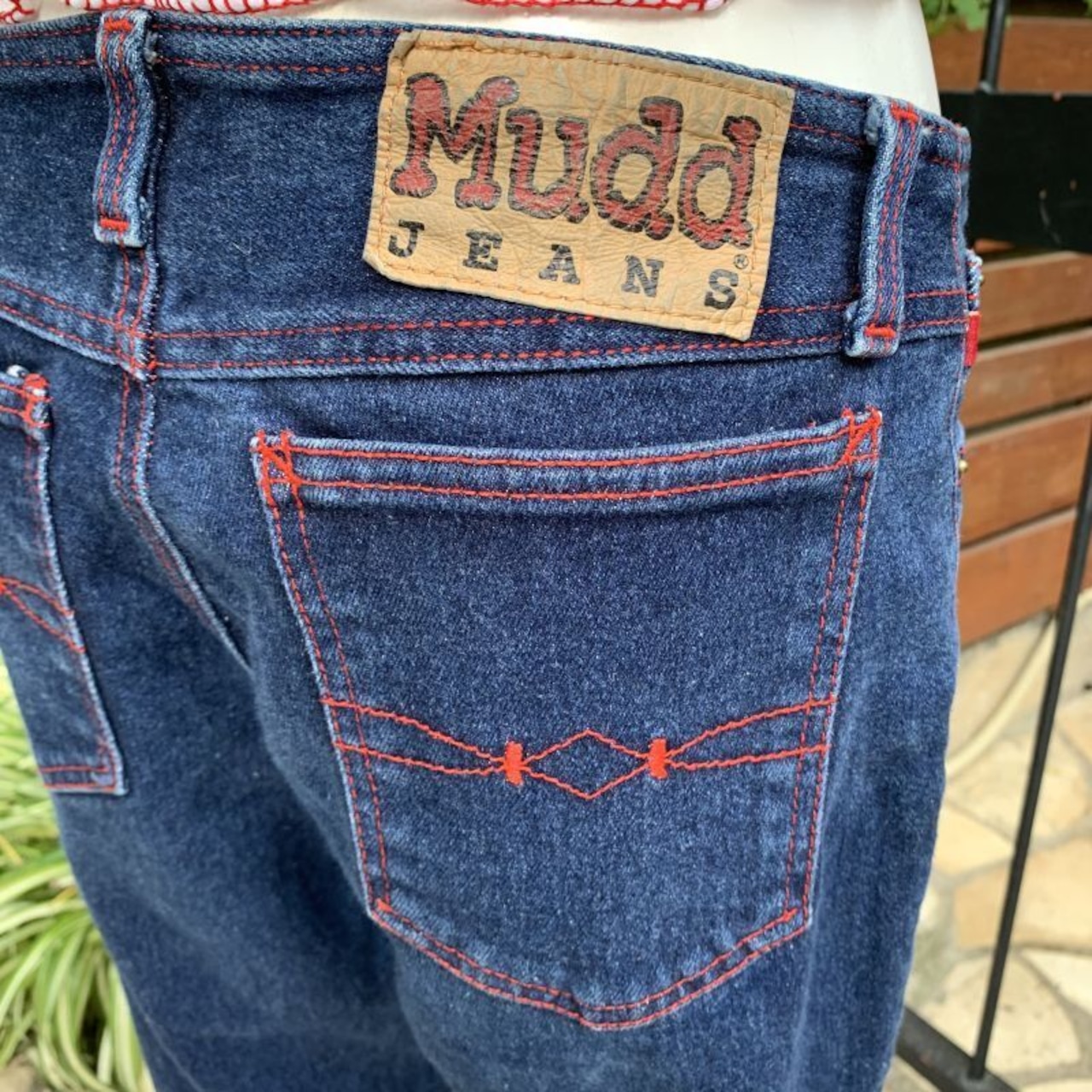 Vintage red stitch bootcut denim pants