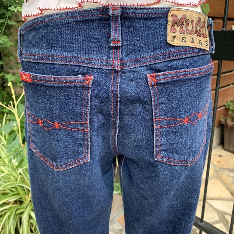 70'S Made in Mexico Vintage red stitch bootcut denim pants。