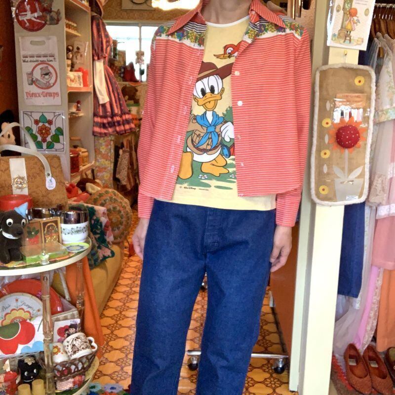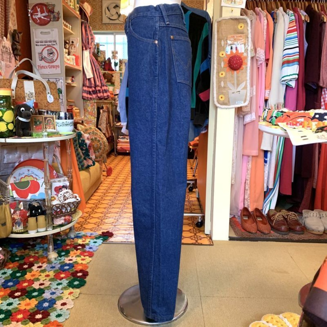 濃いめのデニムカラーにオレンジブラウンのステッチが可愛いデニムパンツです。