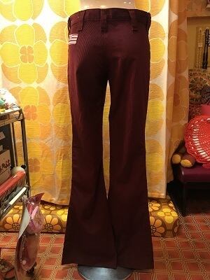 70'S ヨーロッパ ボルドーコーデュロイ ブーツカットパンツです。ボルドーカラーのコーデュロイ生地がとっても可愛いです。ブーツカットのフォルムも可愛いですね。後ろ側にポケットは無く、フロントのポケットも小さめなのでシルエットもきれいです。UFOのタグも雰囲気があって可愛いですね。こちらのパンツはMen'sのお仕立てです。僅かな経年感はありますが気になるような大きなダメージはありません。