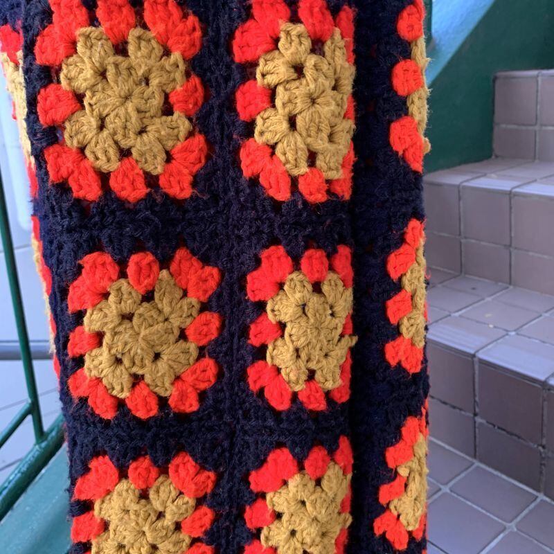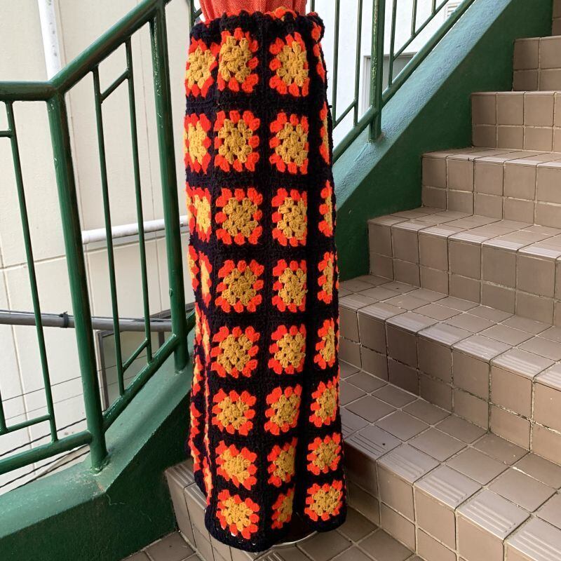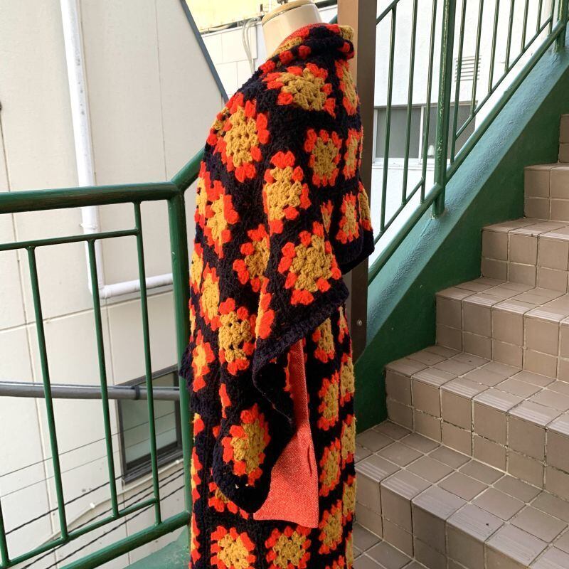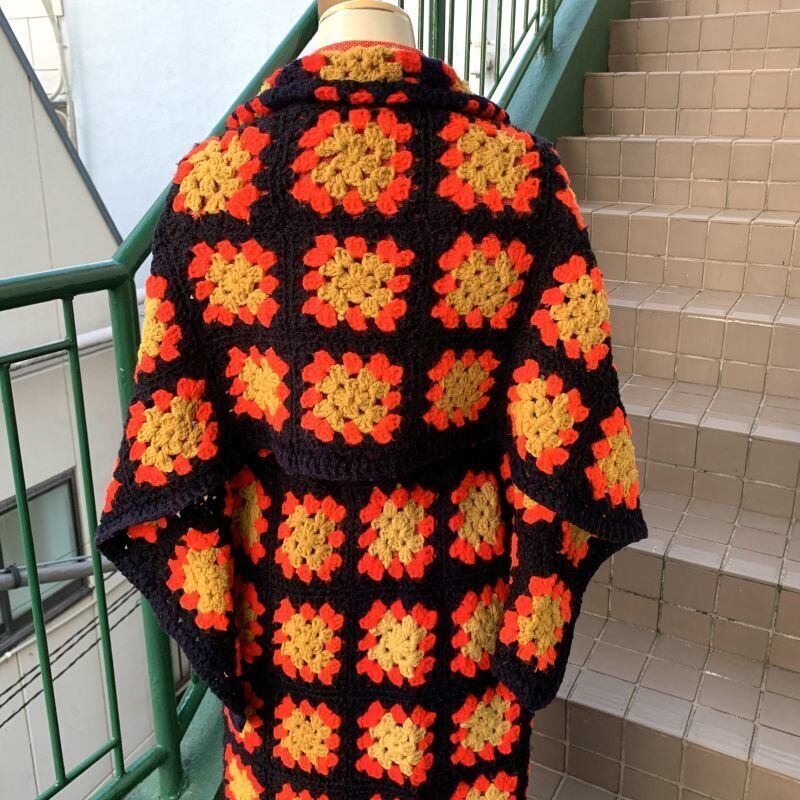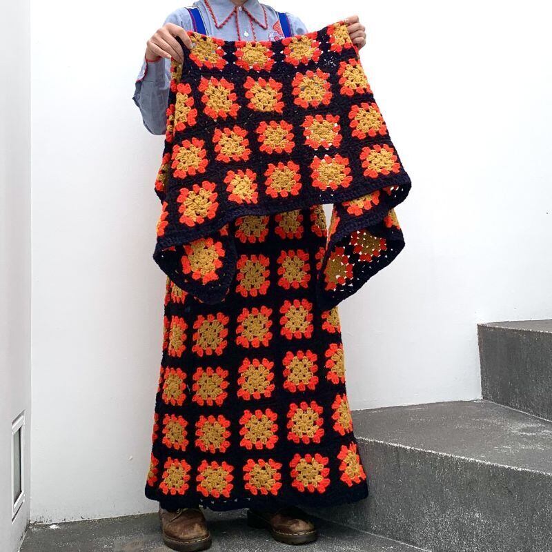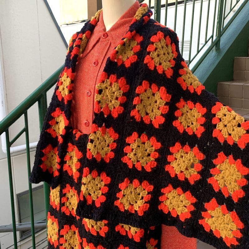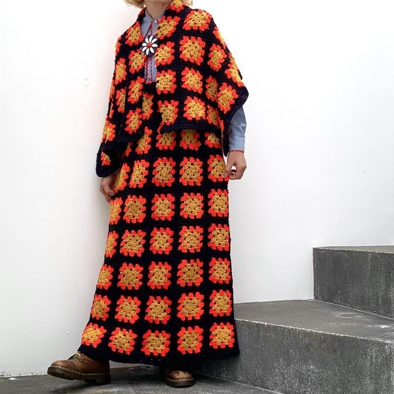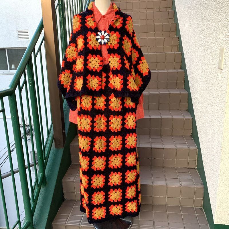 70'S USA Vintage Granny square cape&skirt。