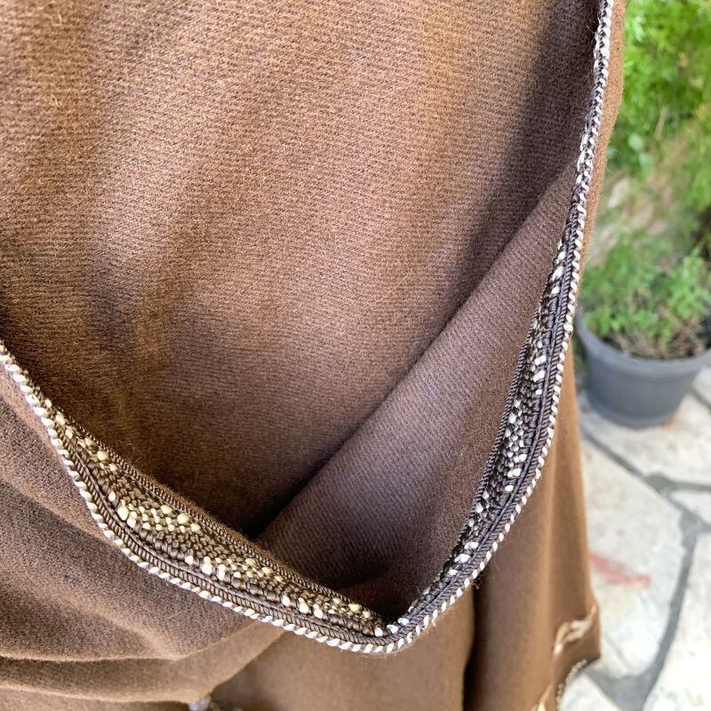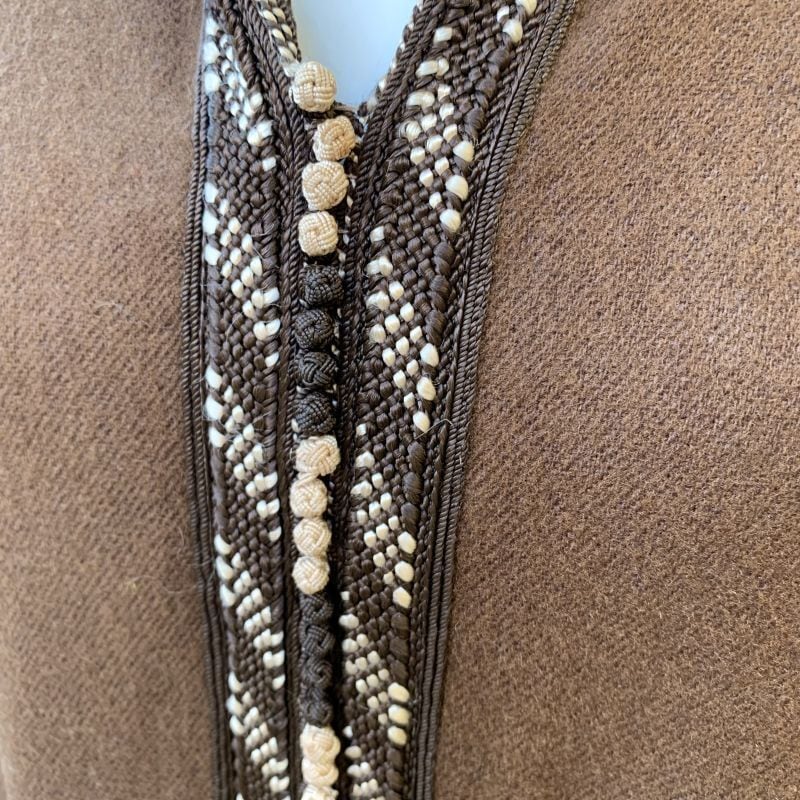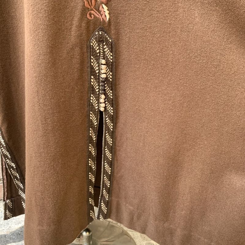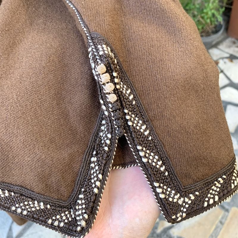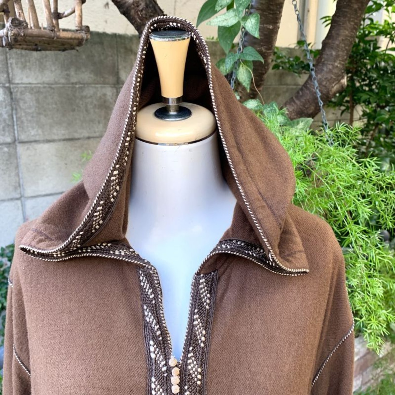 フードの内側やフロントトップの中央、袖口や両サイド、中央の裾のスリットの編み込まれたラインやクルクルと巻かれた小さなボタンのような装飾も当時のハンドワークならではなとっても凝った作りでヴィンテージならではな可愛いデザインです。