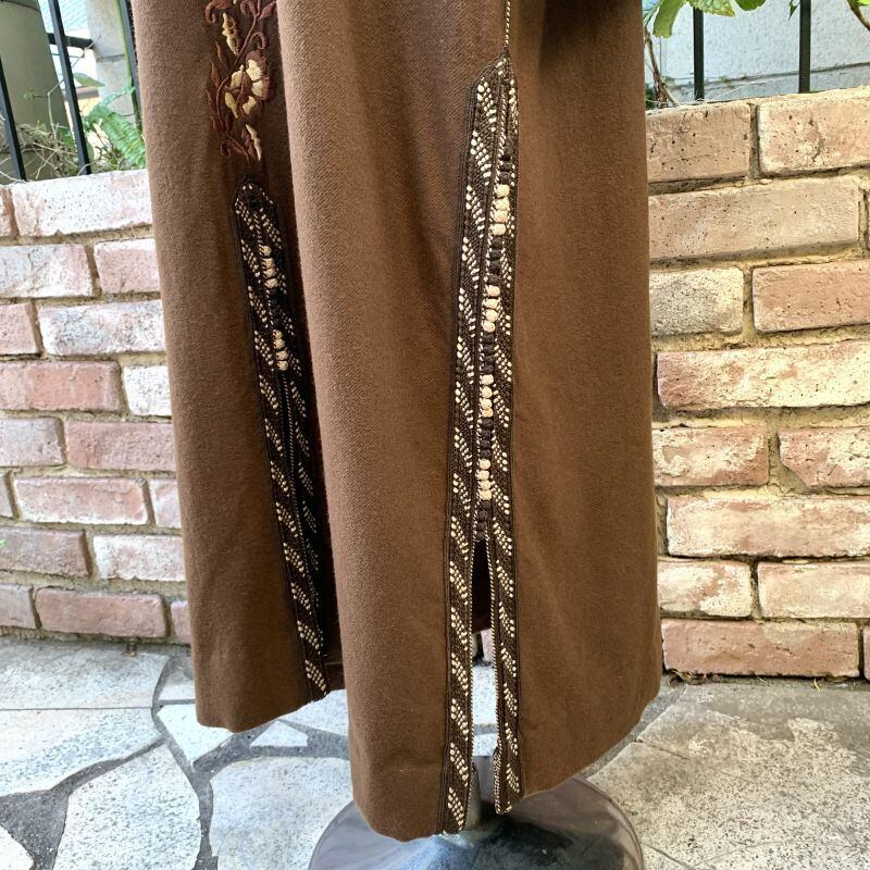 フロント中央とお袖のライトなブラウン、ベージュのフラワー刺繍も雰囲気があって、とっても可愛いです。