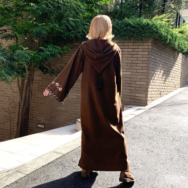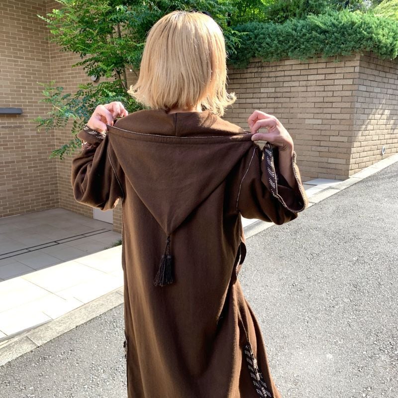 いろいろなアイテムに合わせやすいブラウンカラーにタッセル付きのフード、ロング丈なフォルムがとっても可愛い1着です。