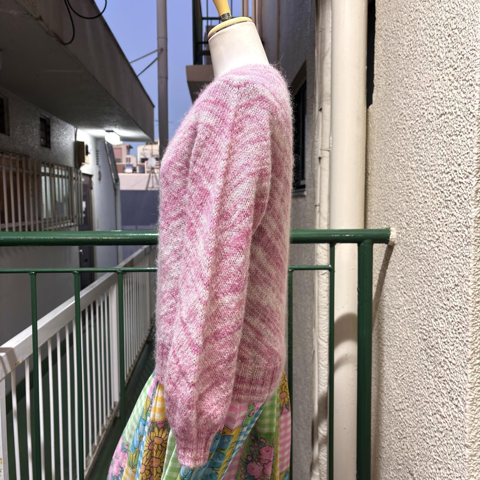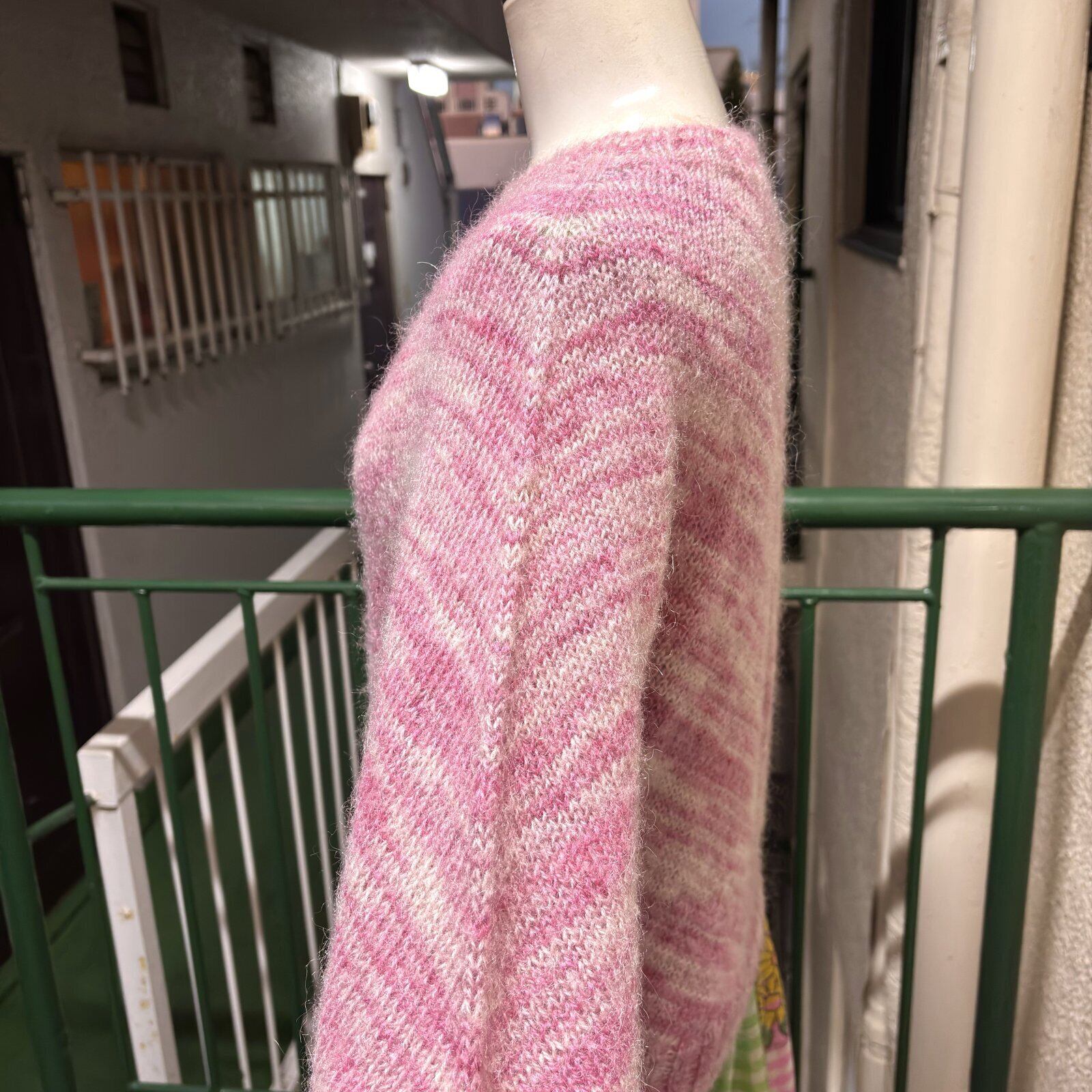 70'S〜80'S USA Vintage PK/WH mix wool knit。