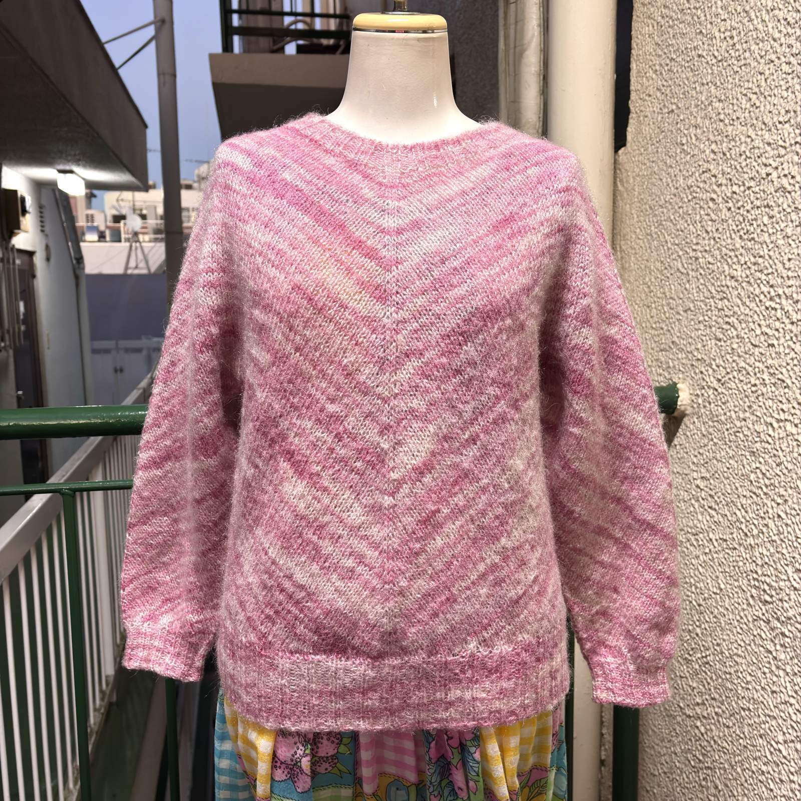Vintage PK/WH mix wool knit
