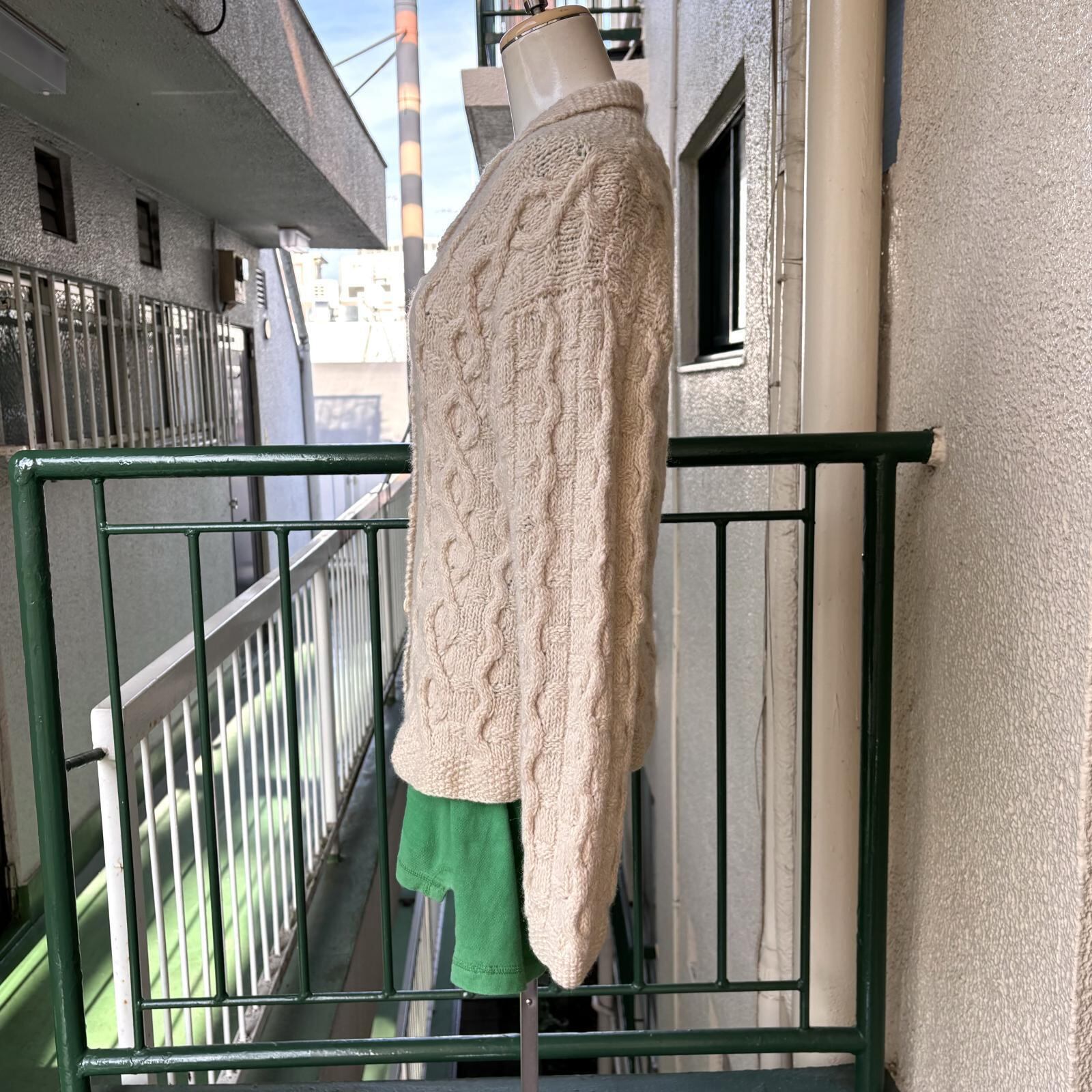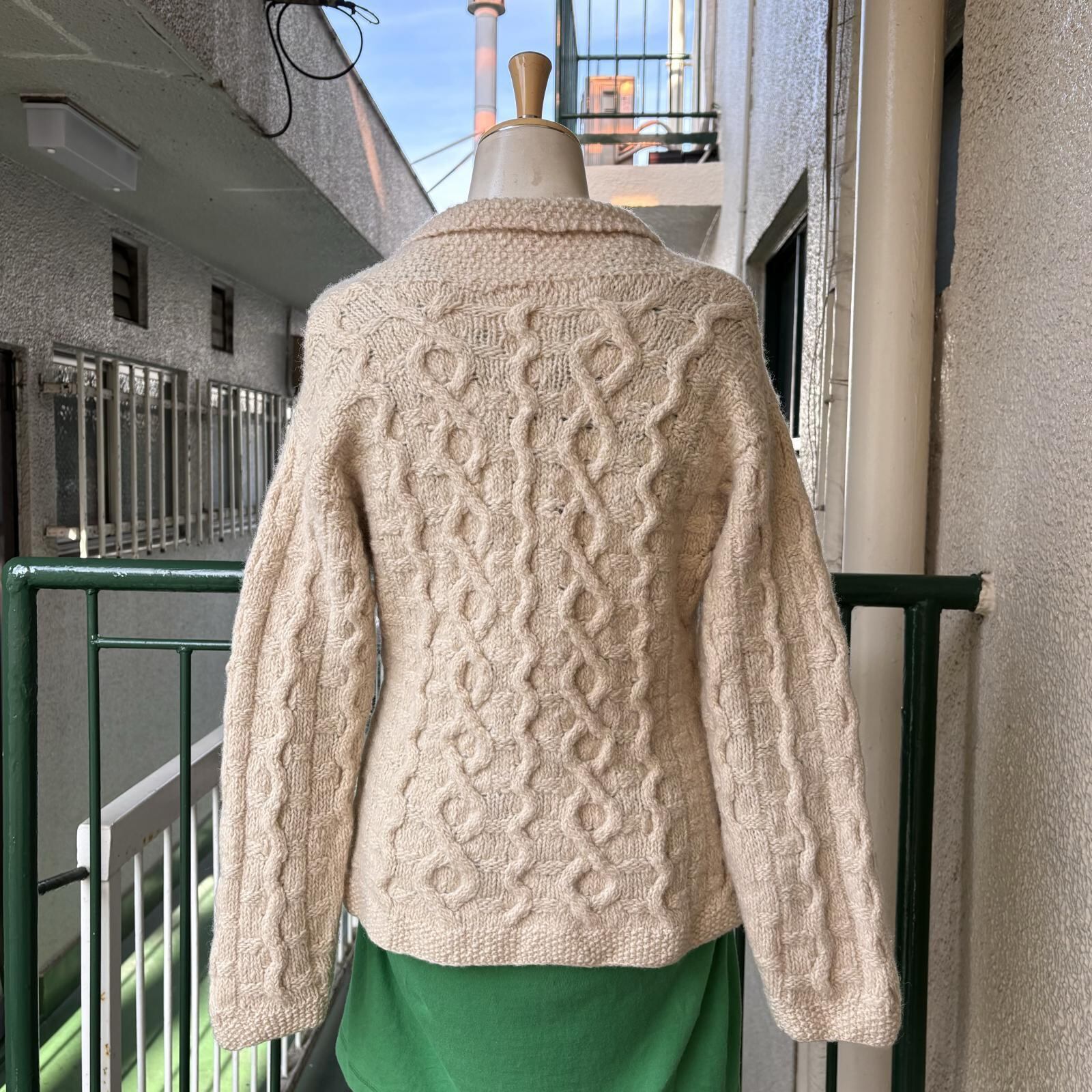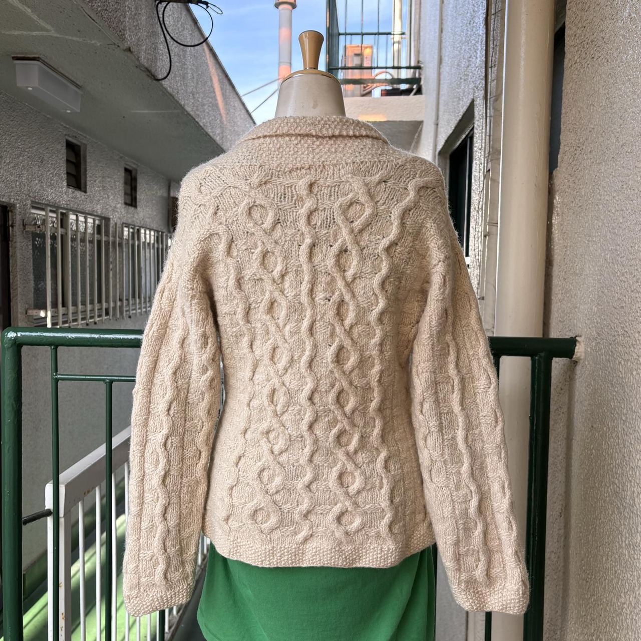 70年代 ヴィンテージ 当時のハンドメイド1点もの ケーブル編み ウールカーディガンです。