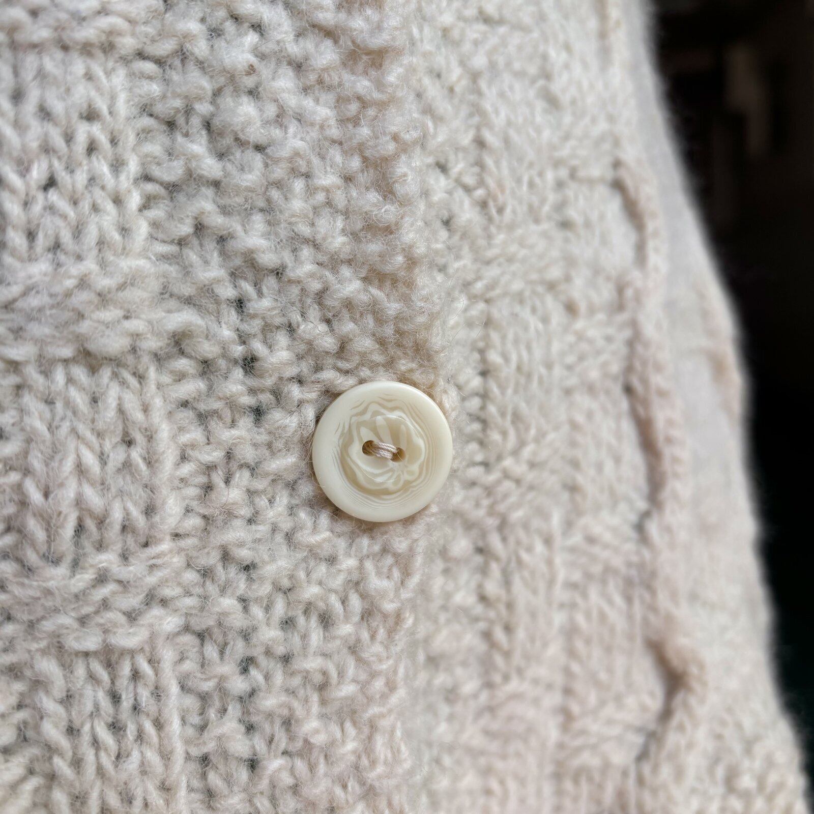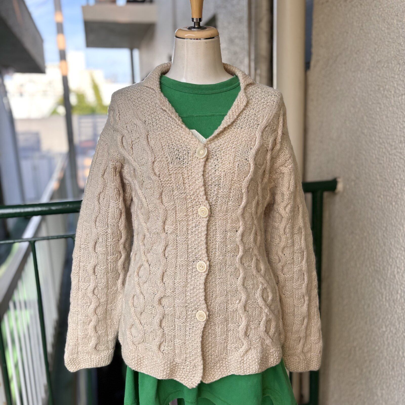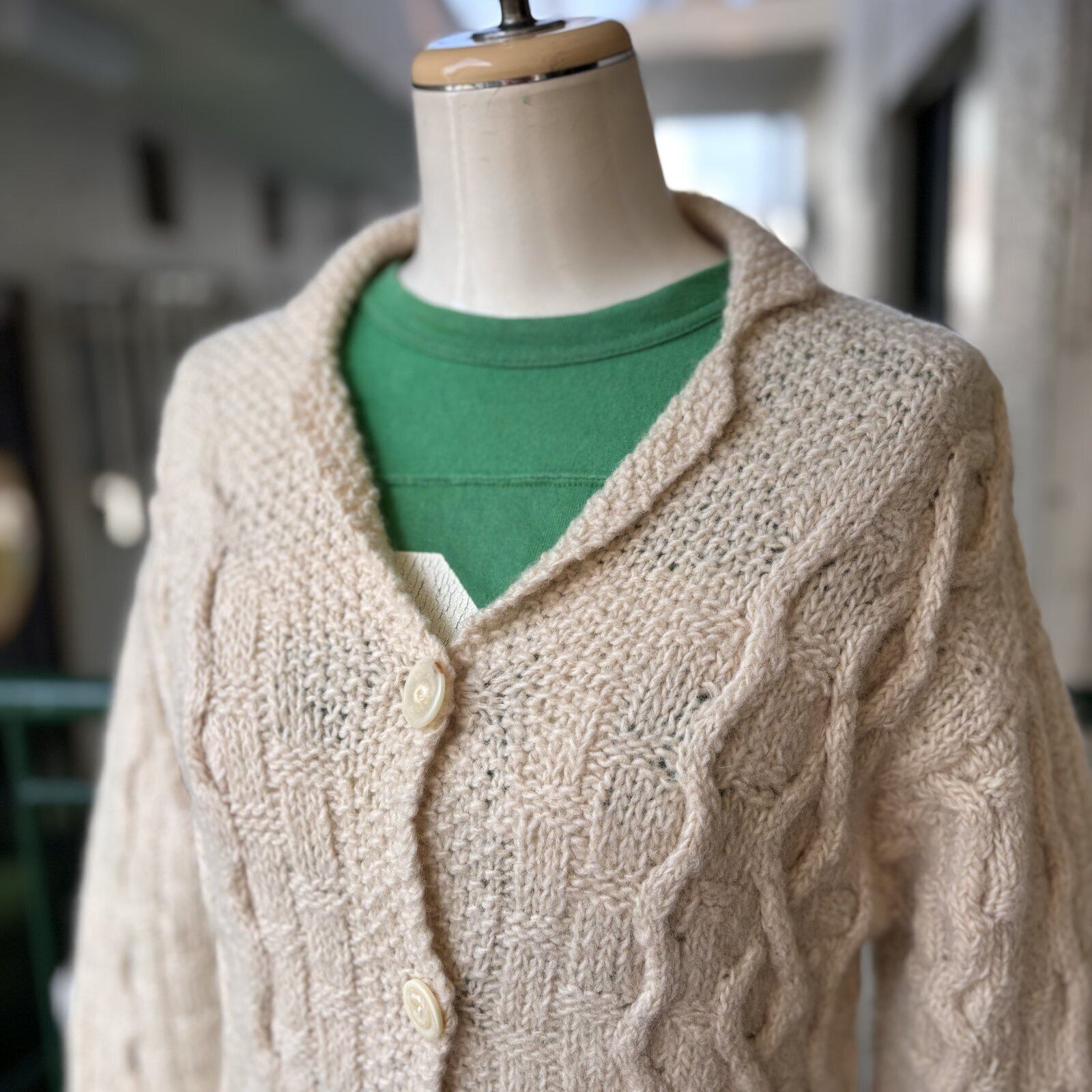 70年代 ヴィンテージ 当時のハンドメイド1点もの ケーブル編み ウールカーディガンです。