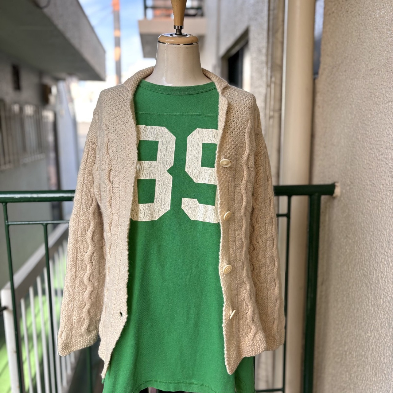 70'S USA Vintage ivory cable tying hand knit cardigan。