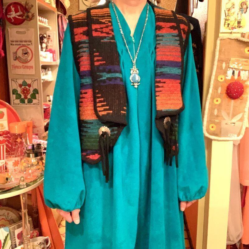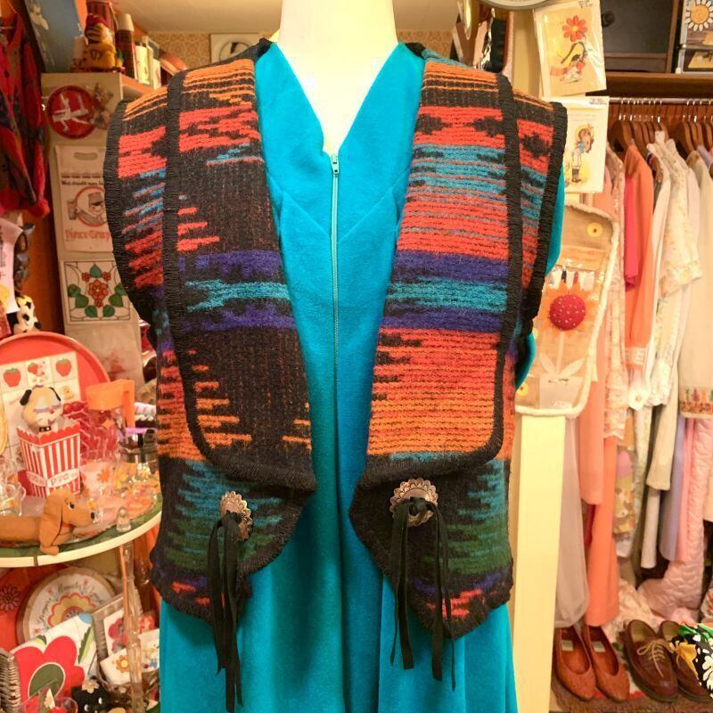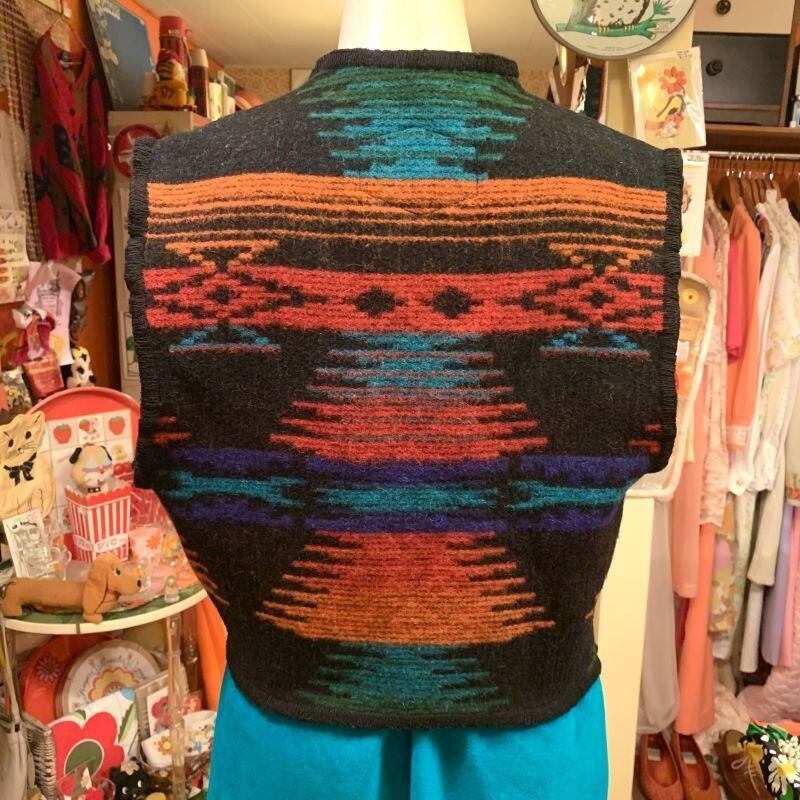 90'S USA Native pattern wool vest。
