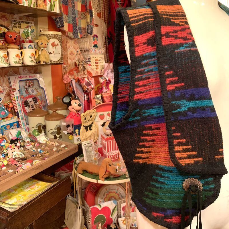 ブラックベースにレッドやオレンジ、グリーン、ブルーの大地や空を思わせるようなカラーリングやネイティブ柄がとっても素敵な雰囲気です。