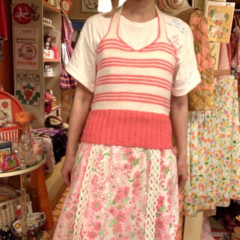 70年代 当時のハンドメイド1点もの アクリルニットのホルターネックトップスです。
