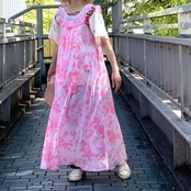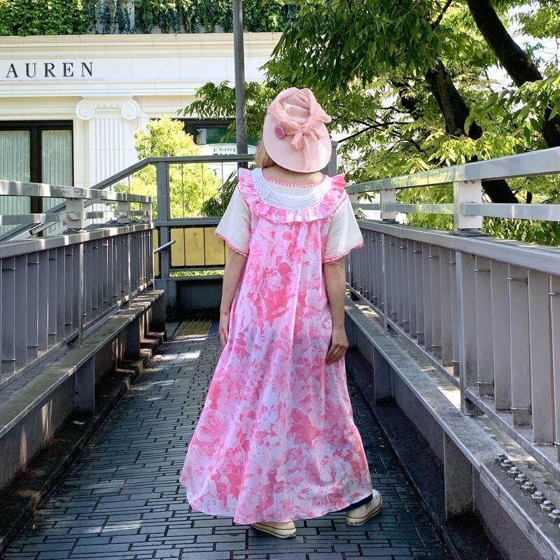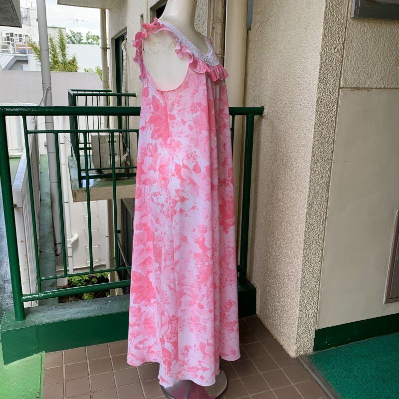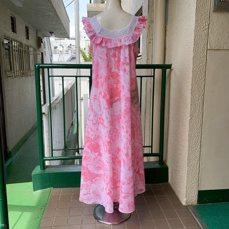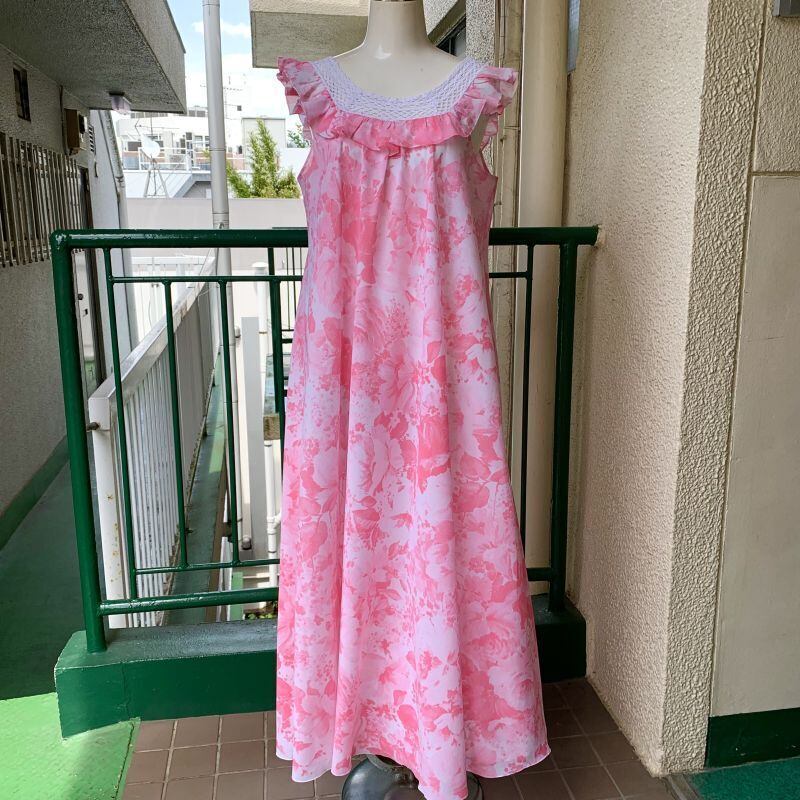 70年代から80年代 当時のハンドメイド1点もの ヴィンテージ フラワー柄 ランジェリーロングドレスです。