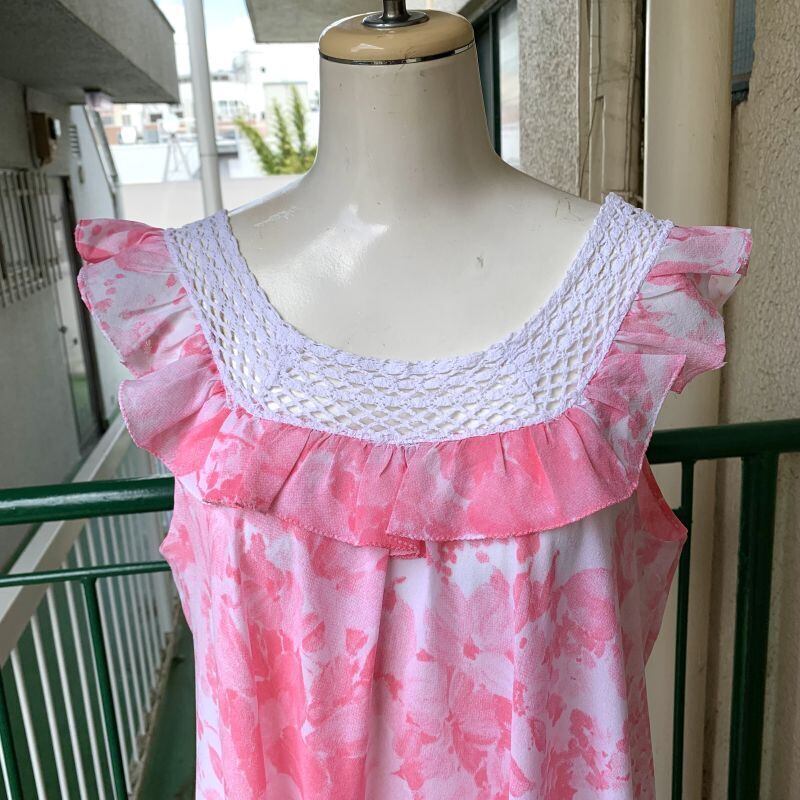 70'S〜80'S USA Vintage flower pattern crochet collar lingerie dress。