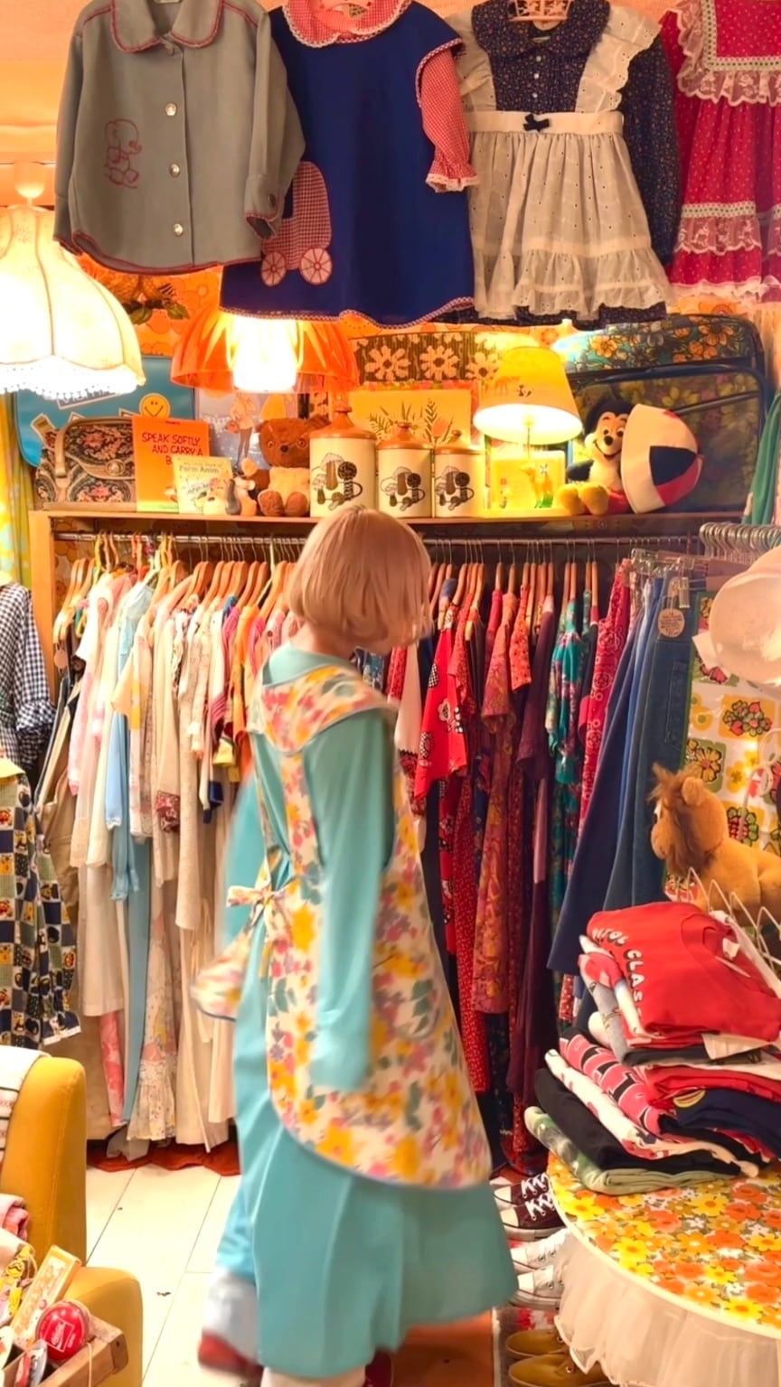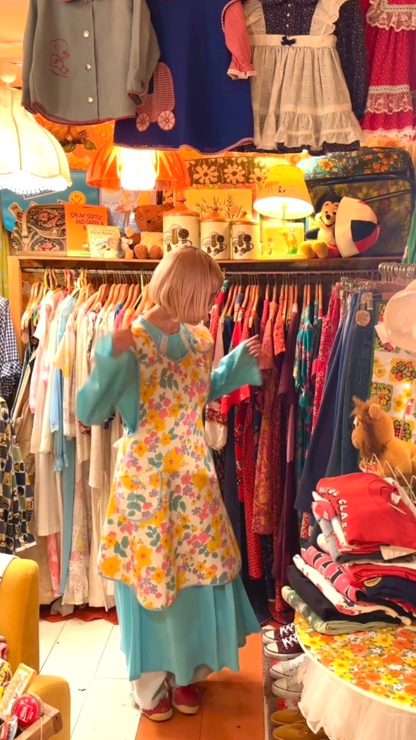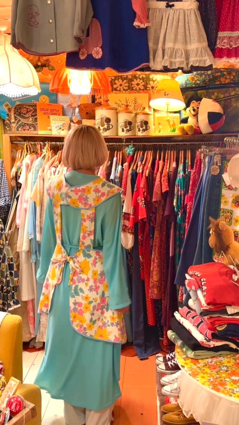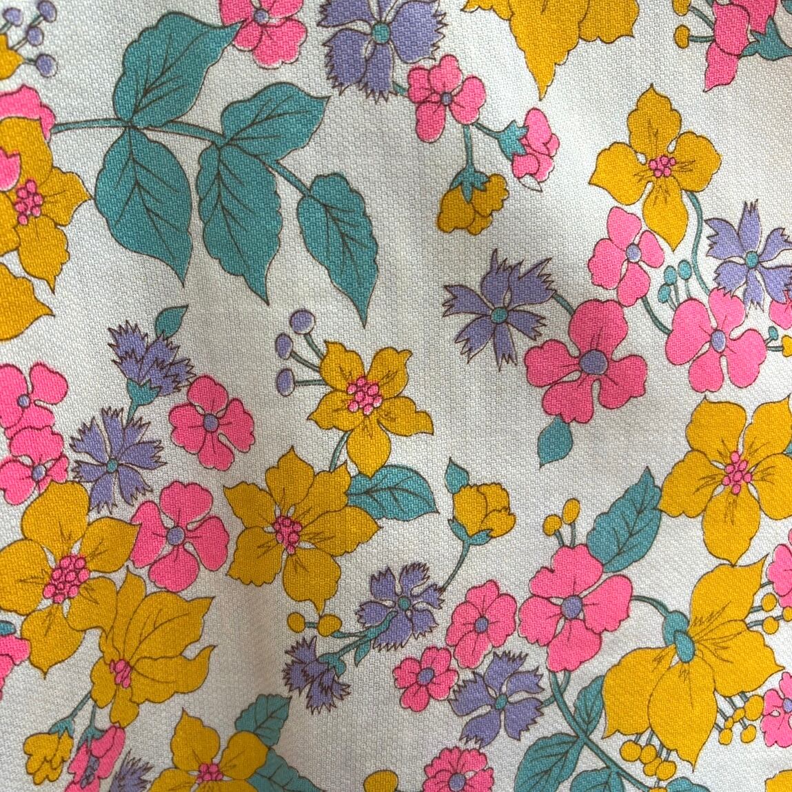 ライトで織りのあるヴィンテージ ならではな生地感やポップなフラワー柄がとっても可愛い1着です。