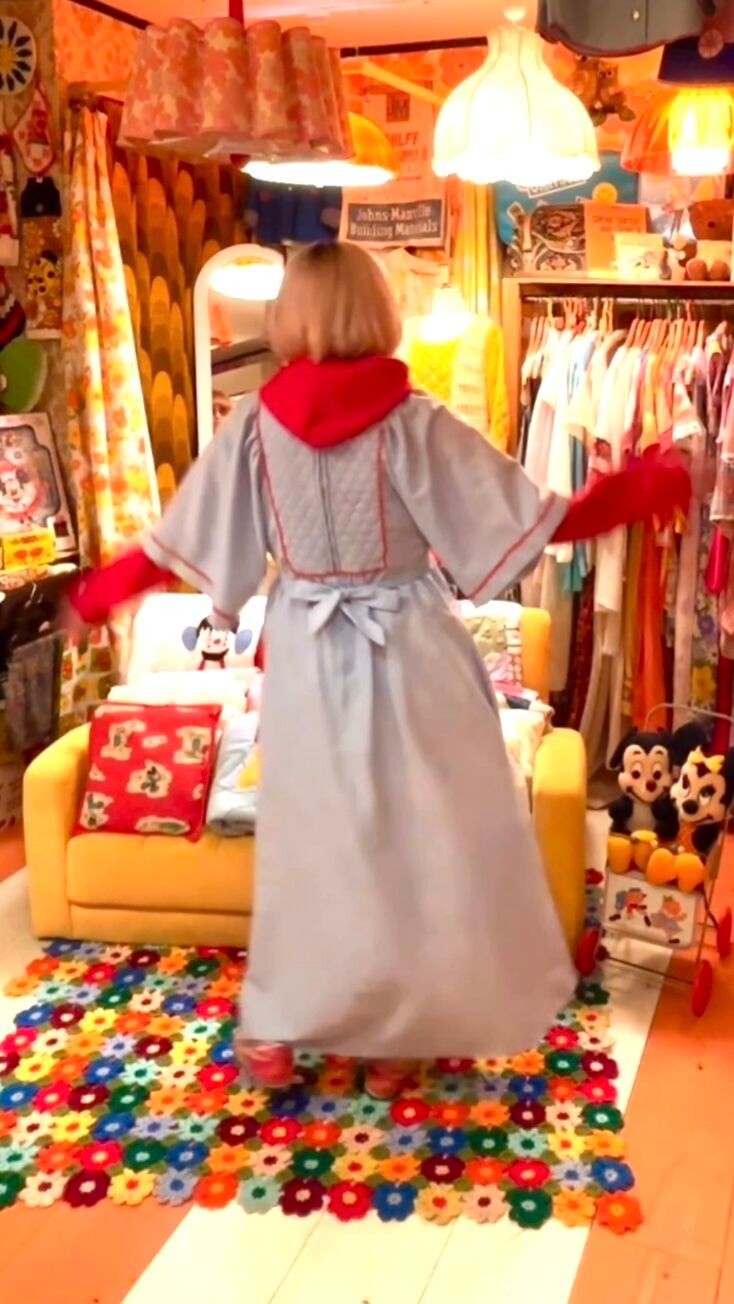 フレアスリーブのフォルムやキルティングに施されたレッドのステッチも可愛いポイントです。