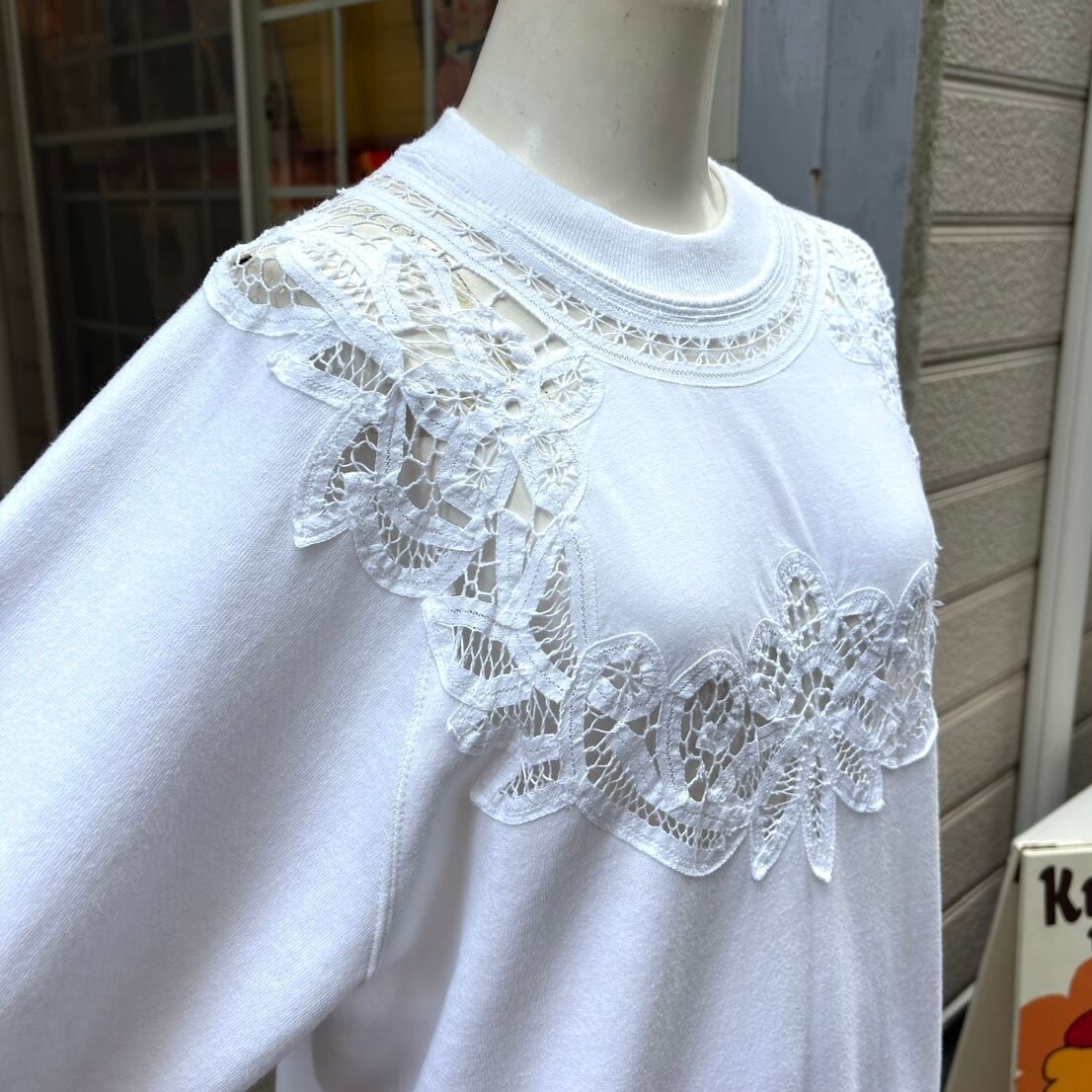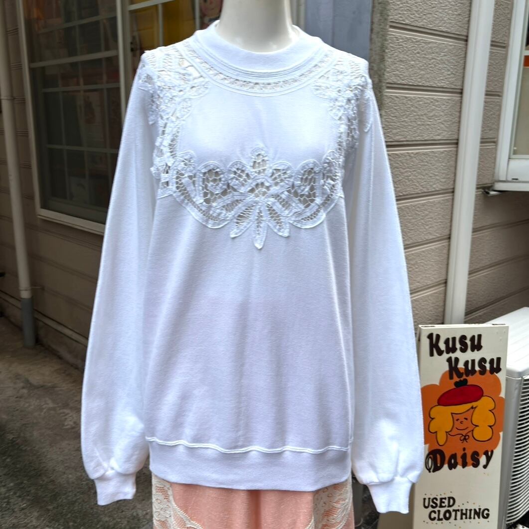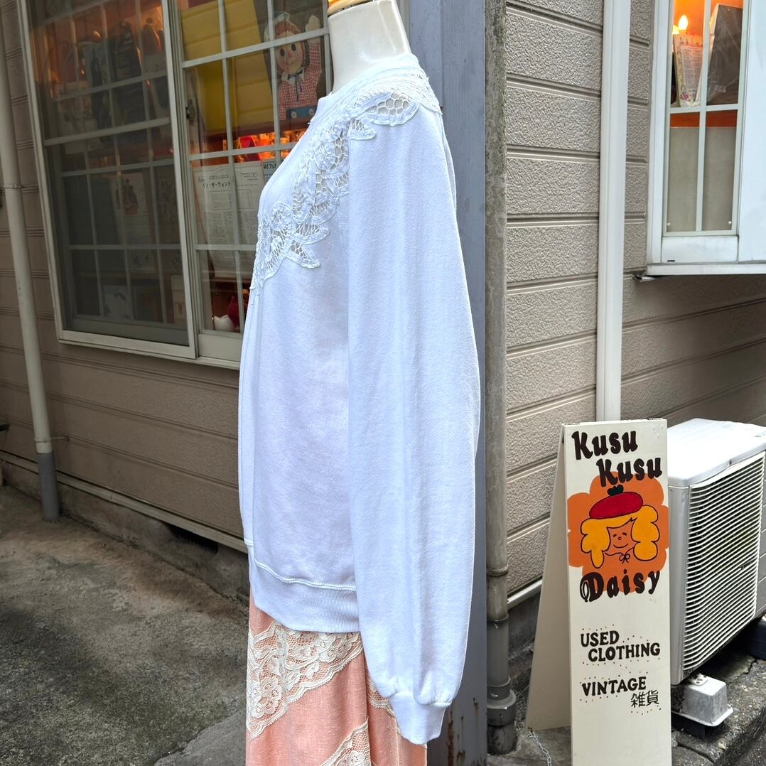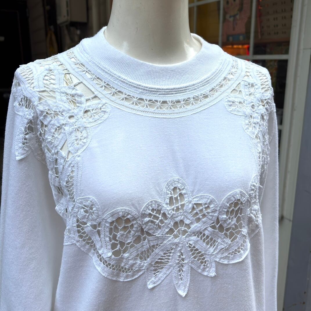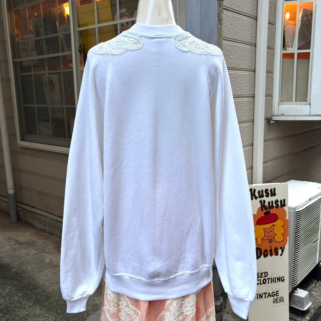 80'S USA JERZEES Vintage cotton crochet flower lace sweat。
