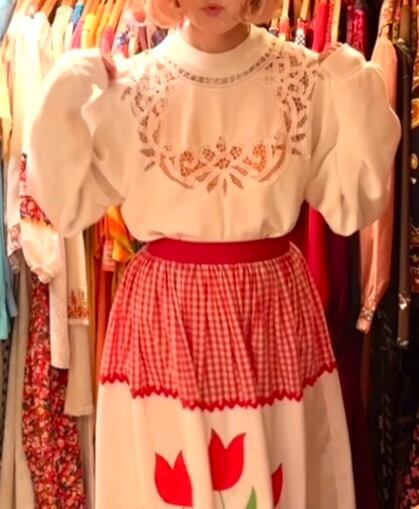 ホワイトのボディーに首元、トップのコットンのかぎ針編みフラワーレースのデザインがとっても可愛い1着です。
