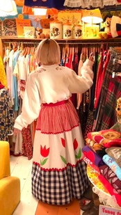 チェック柄のスカートやパンツと合わせたスタイリングも可愛いです。