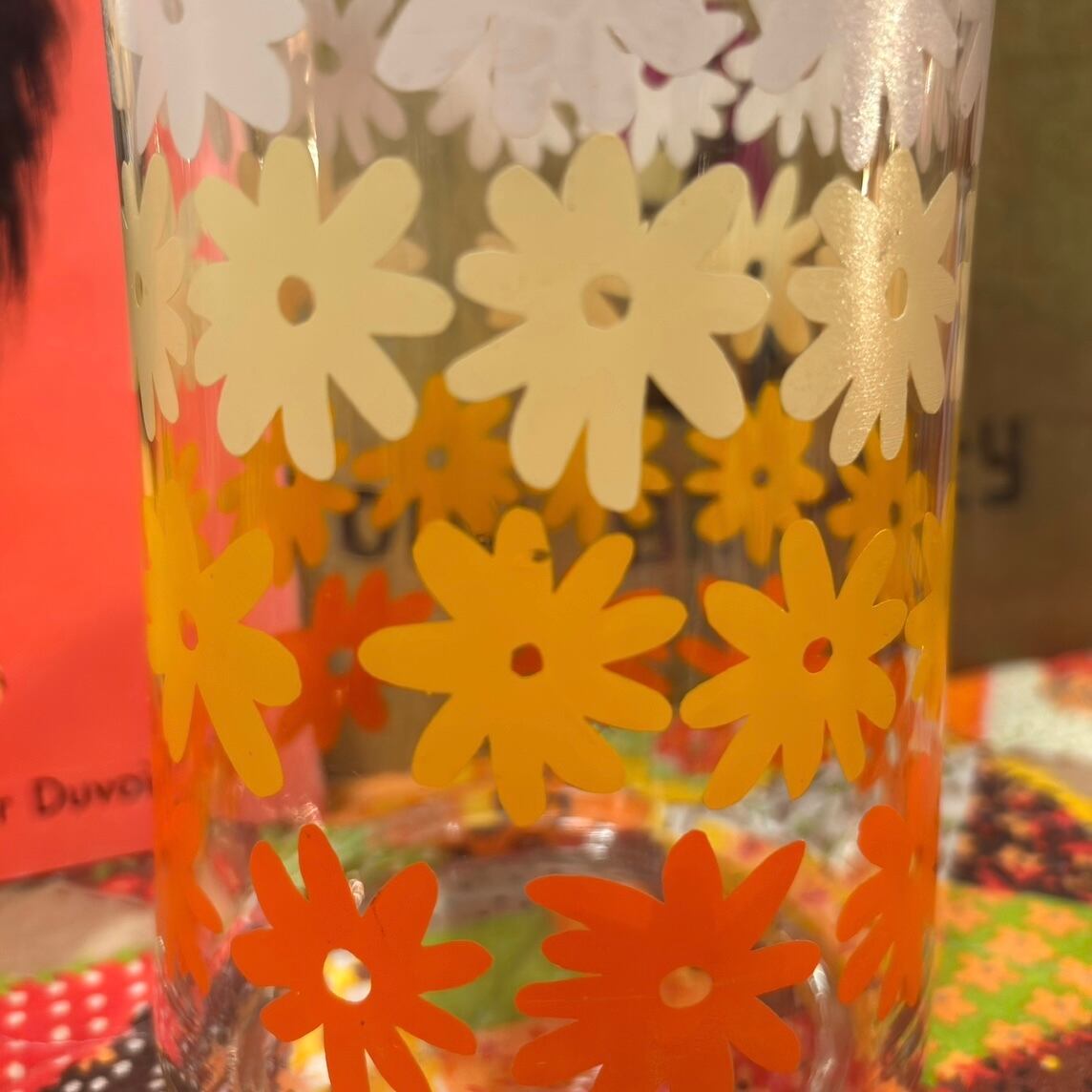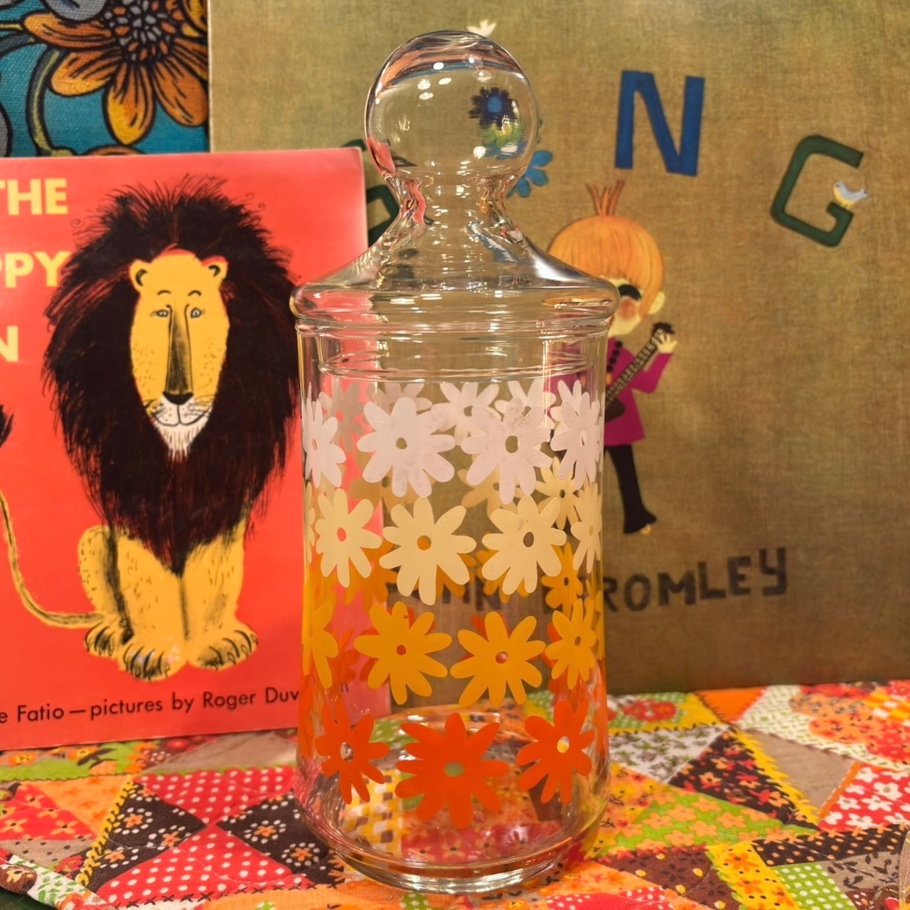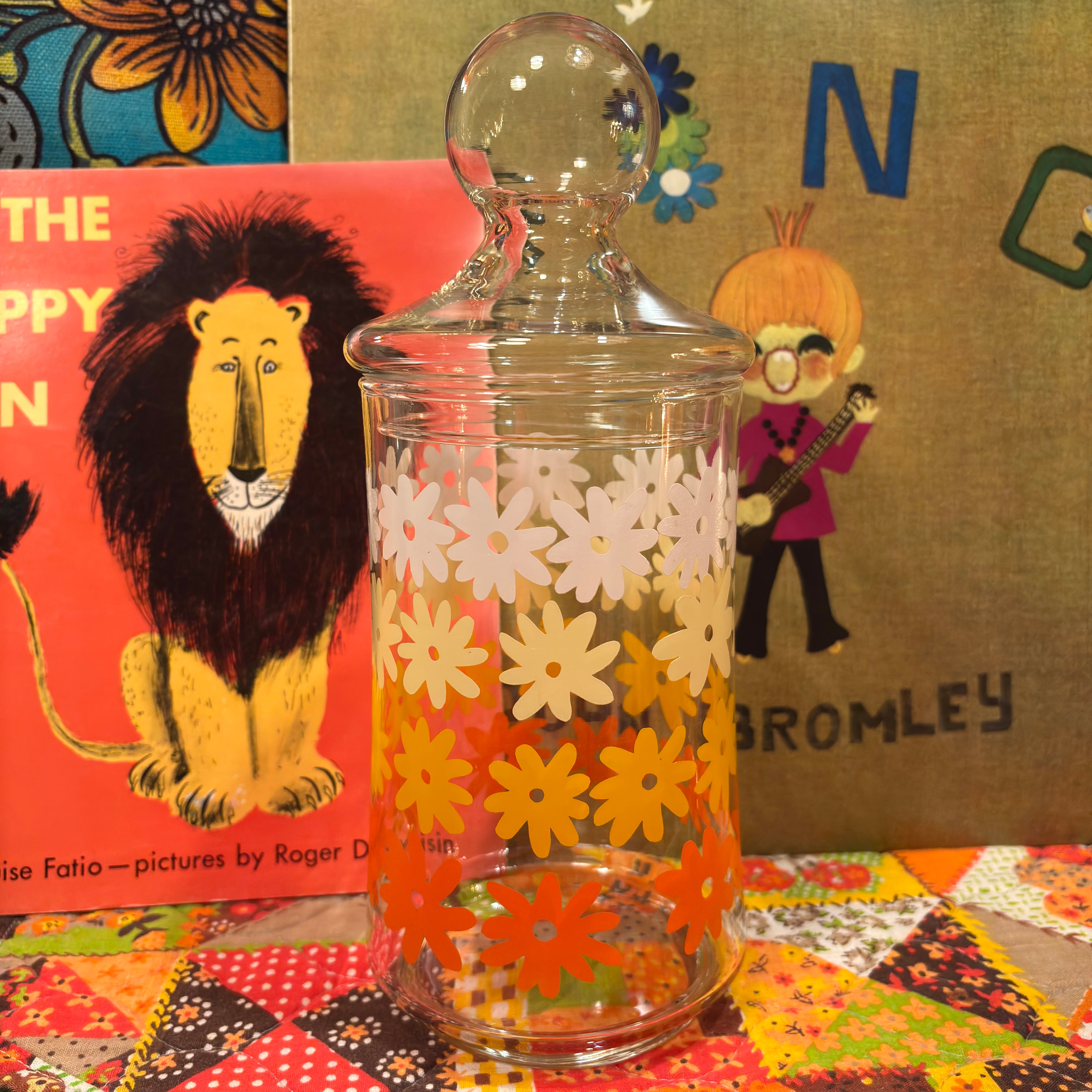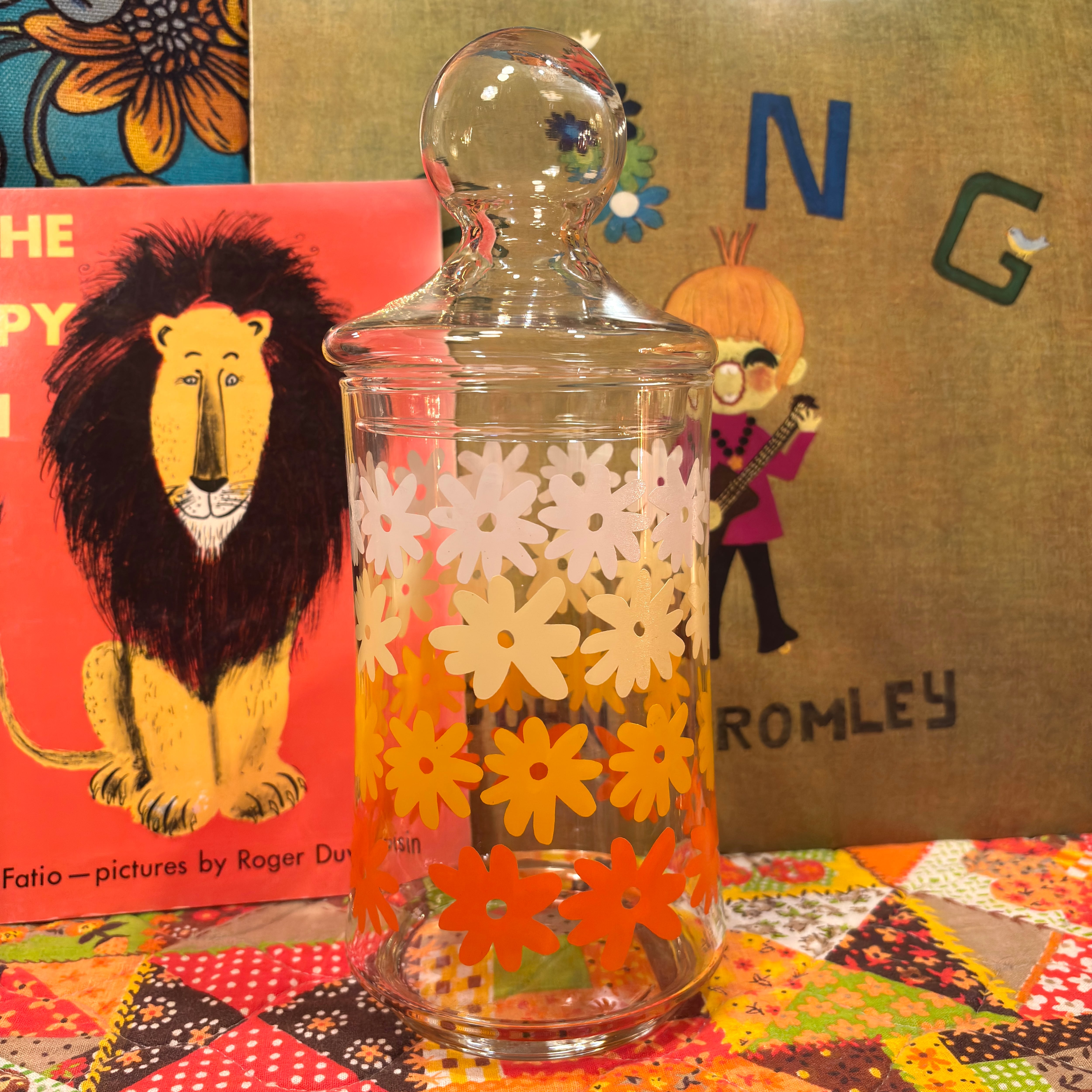 Vintage or/ye/wh flower glass canister