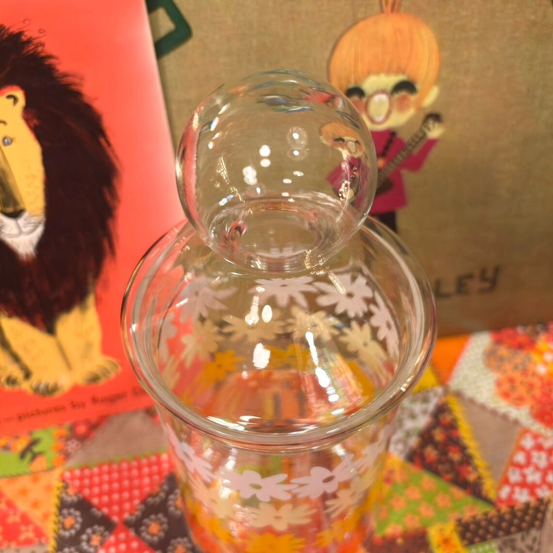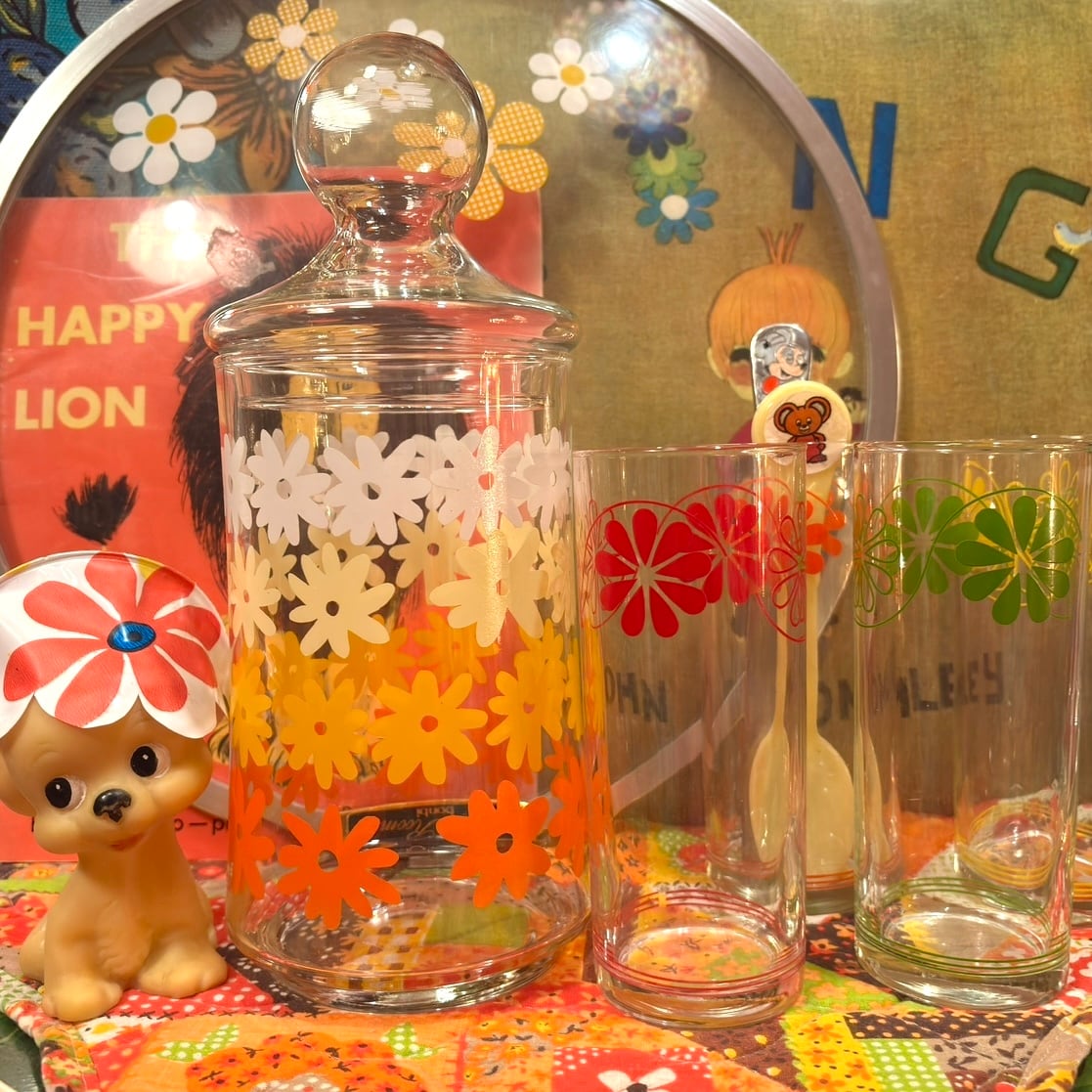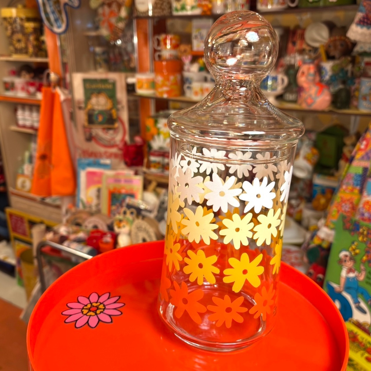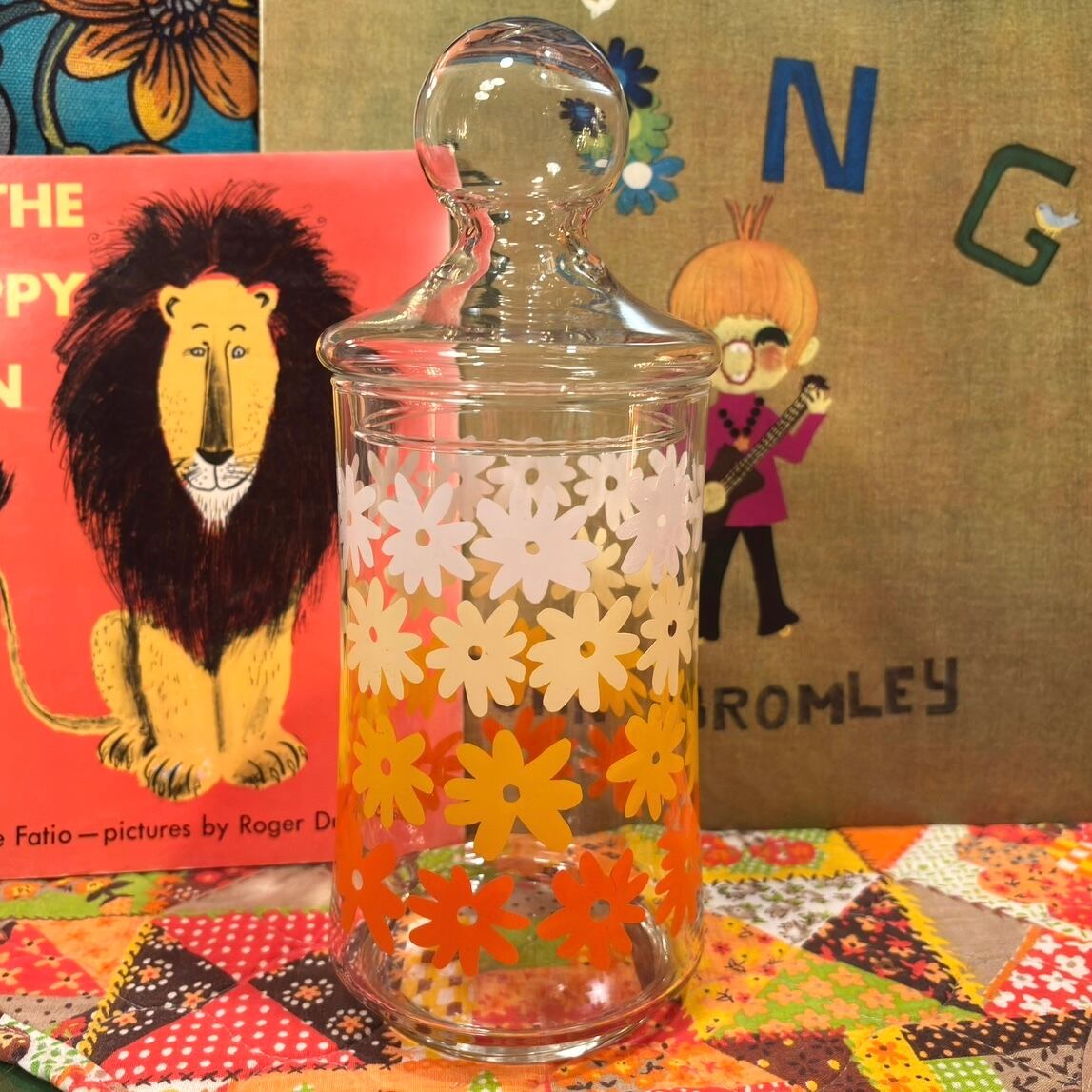 昭和レトロ deadstock Vintage or/ye/wh flower glass canister。