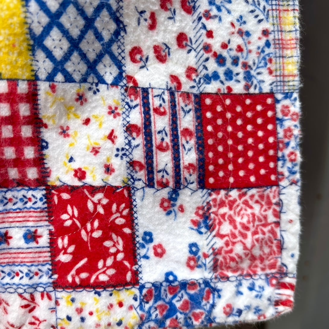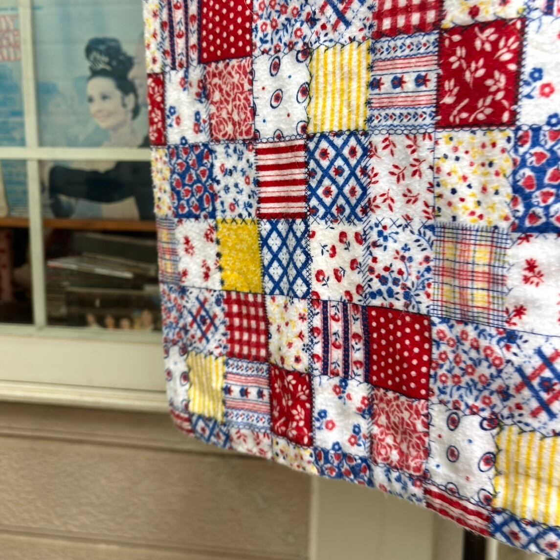 70'S USA Vintage patchwork pattern flannel fabric reversible blanket cover。