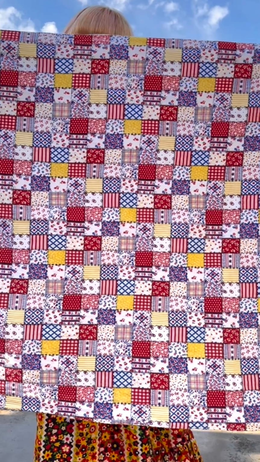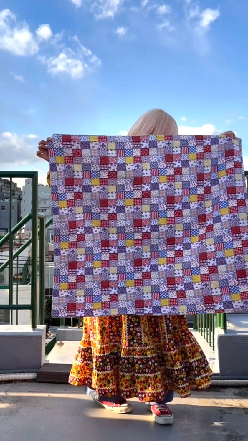 70年代 ヴィンテージ 当時のハンドメイド1点もの パッチワーク柄 リバーシブル ブランケット カバーです。