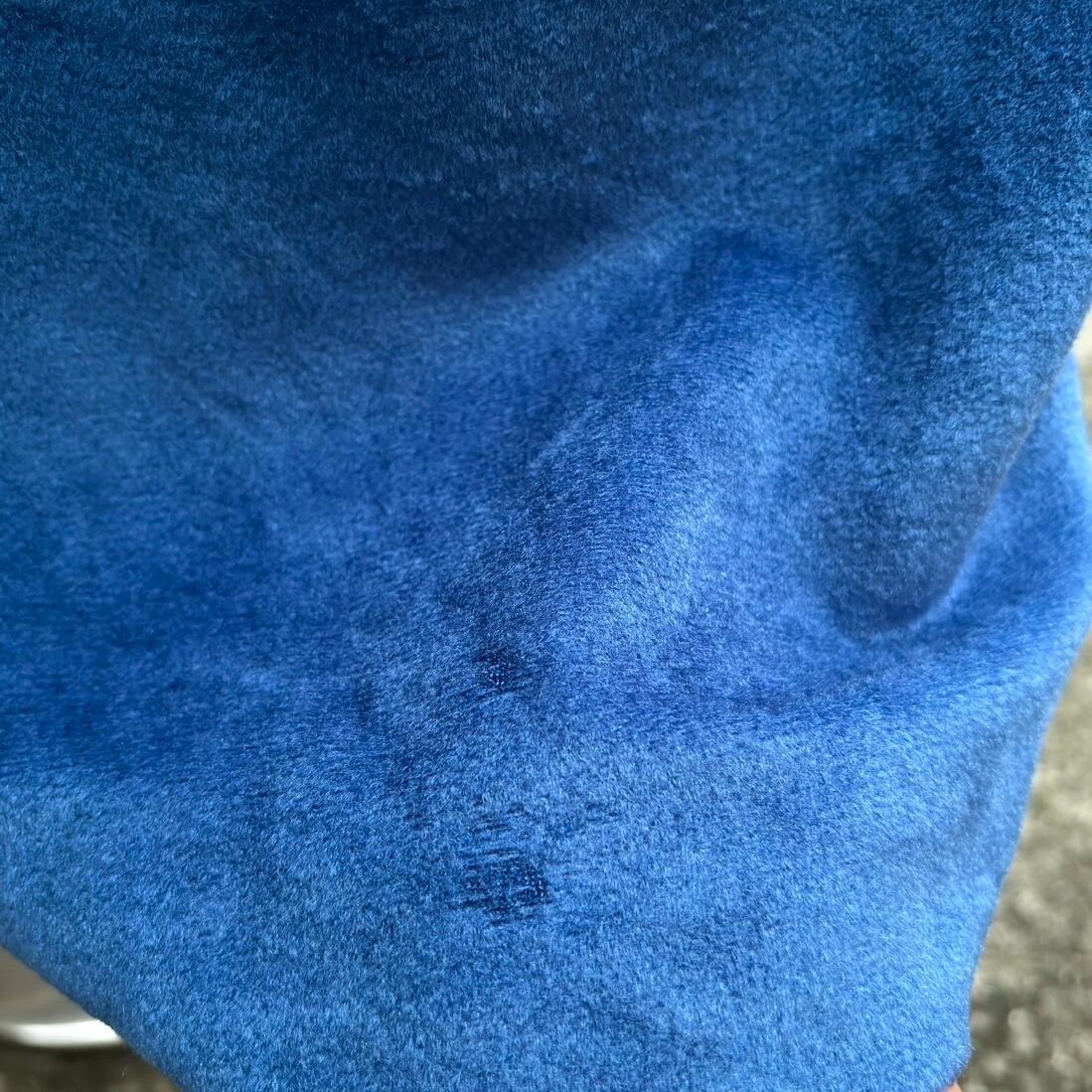 経年によるフロントのウエスト下に若干の擦れによる色むら、背面側の裾上に擦れによる僅かなホールのリペアがありますが、あまり気にならない程度かと思います。