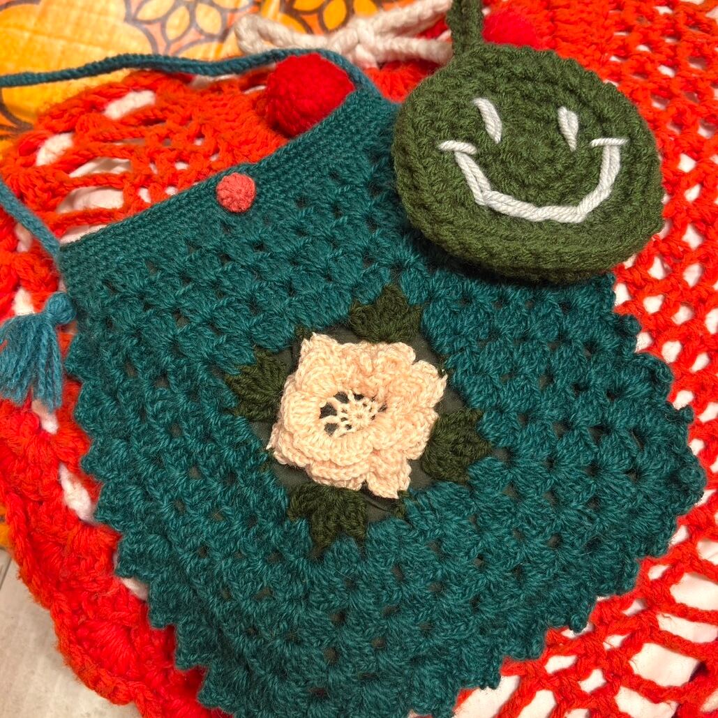 Vintage flower motif granny square pochette