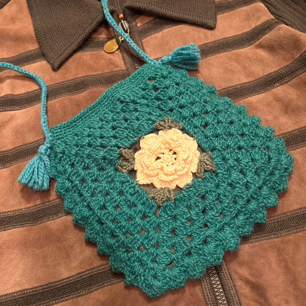 USA買い付け 当時のハンドメイド1点ものVintage flower motif granny square pochette。