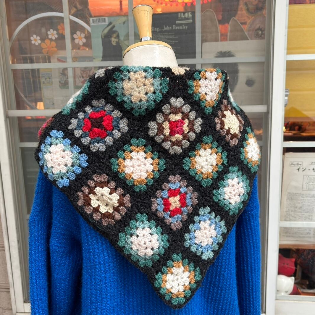 ヴィンテージ 当時のハンドメイド1点もの グラニースクエアのニットカバーです。