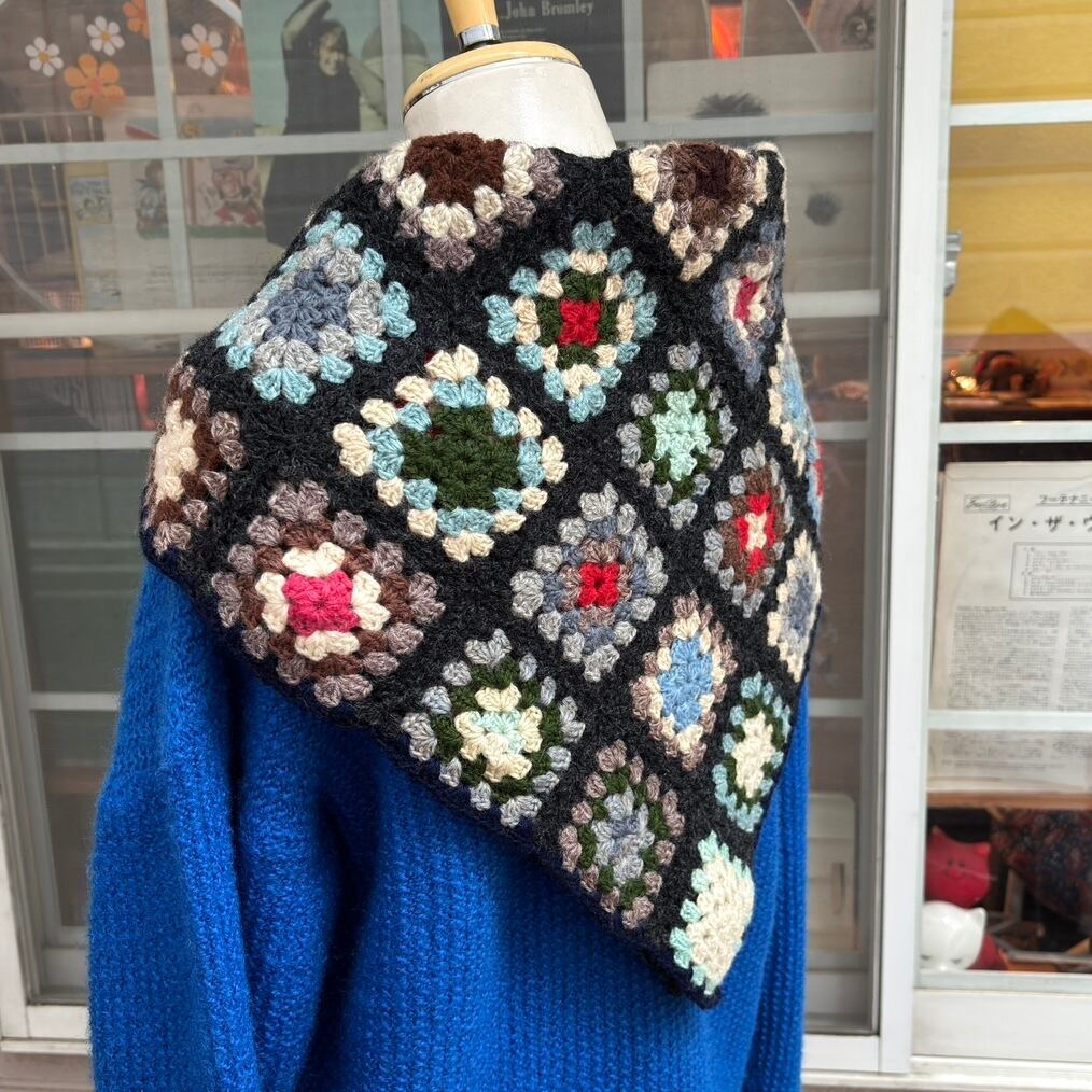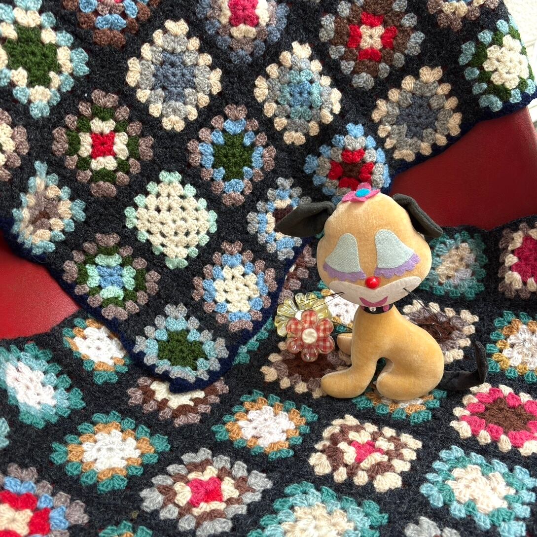 ヴィンテージ 当時のハンドメイド1点もの グラニースクエアのニットカバーです。