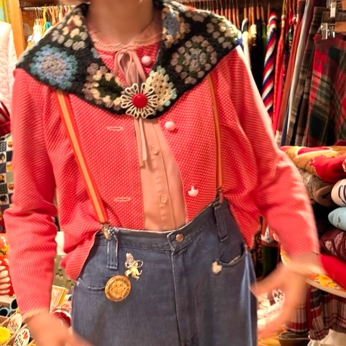 薄手なので、コーナーマットやカバーとしてお使い頂いたり、ブローチなどで留めてストールとしてお使い頂いたり、アレンジを加えてエプロンにリメイクして頂いでも可愛いかと思います。