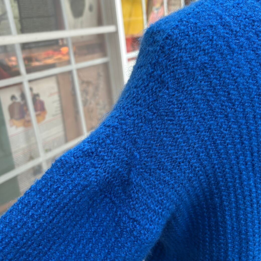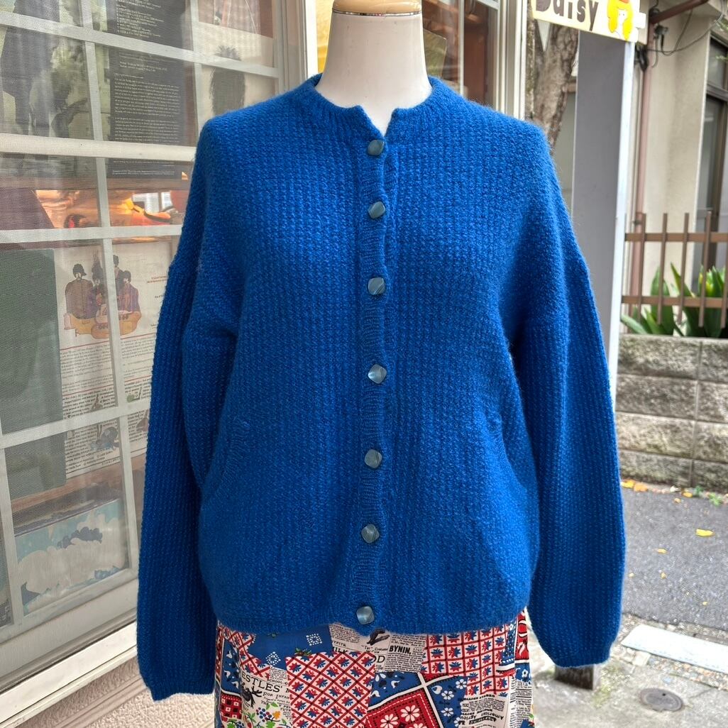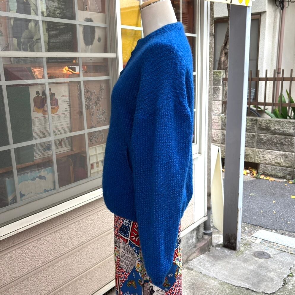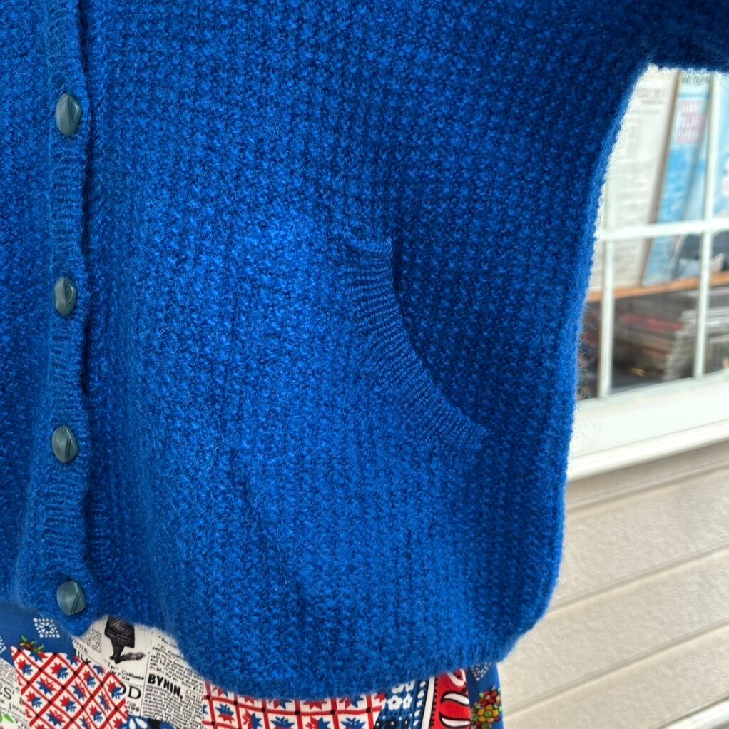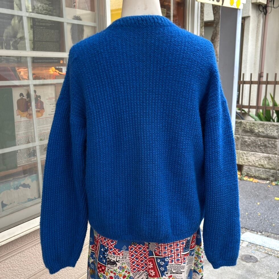 70'S USA Vintage Blue design sleeves knit cardigan。