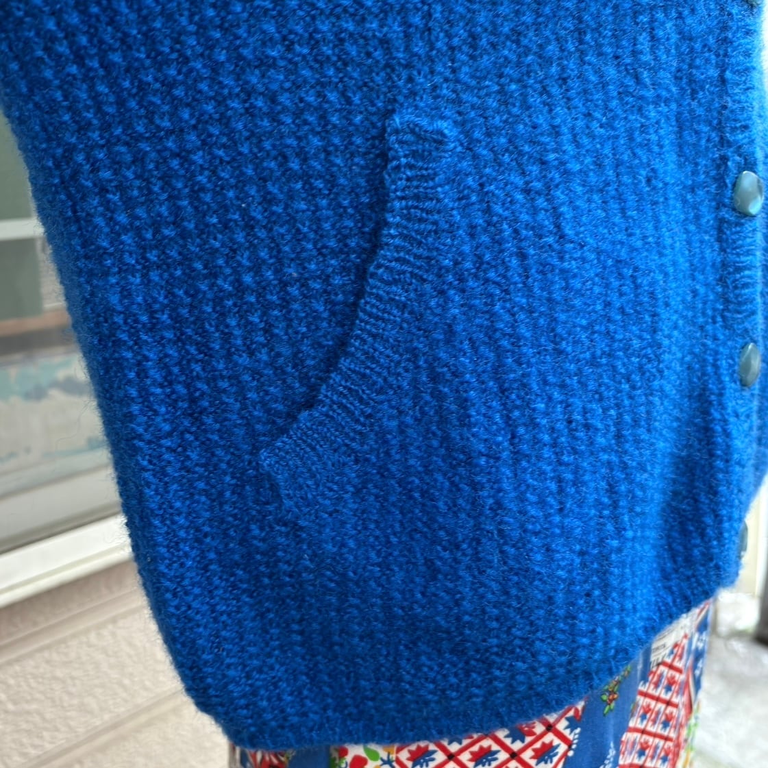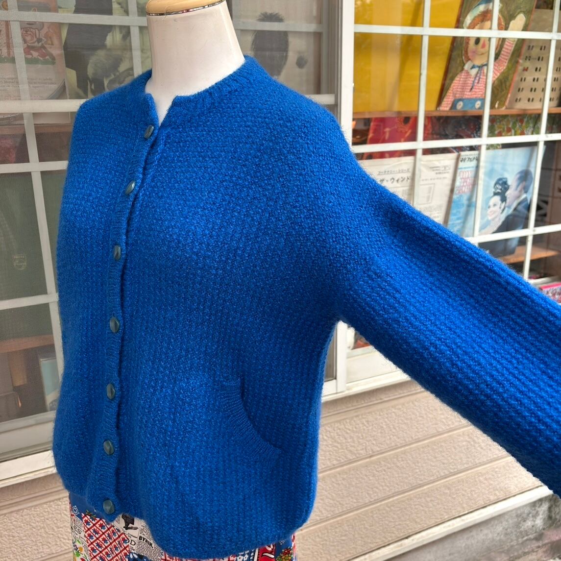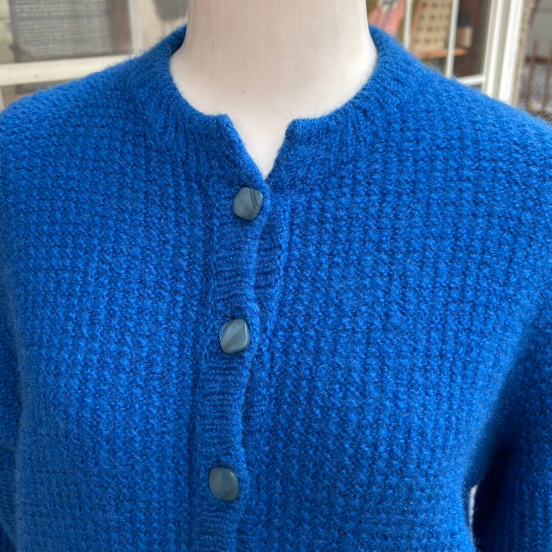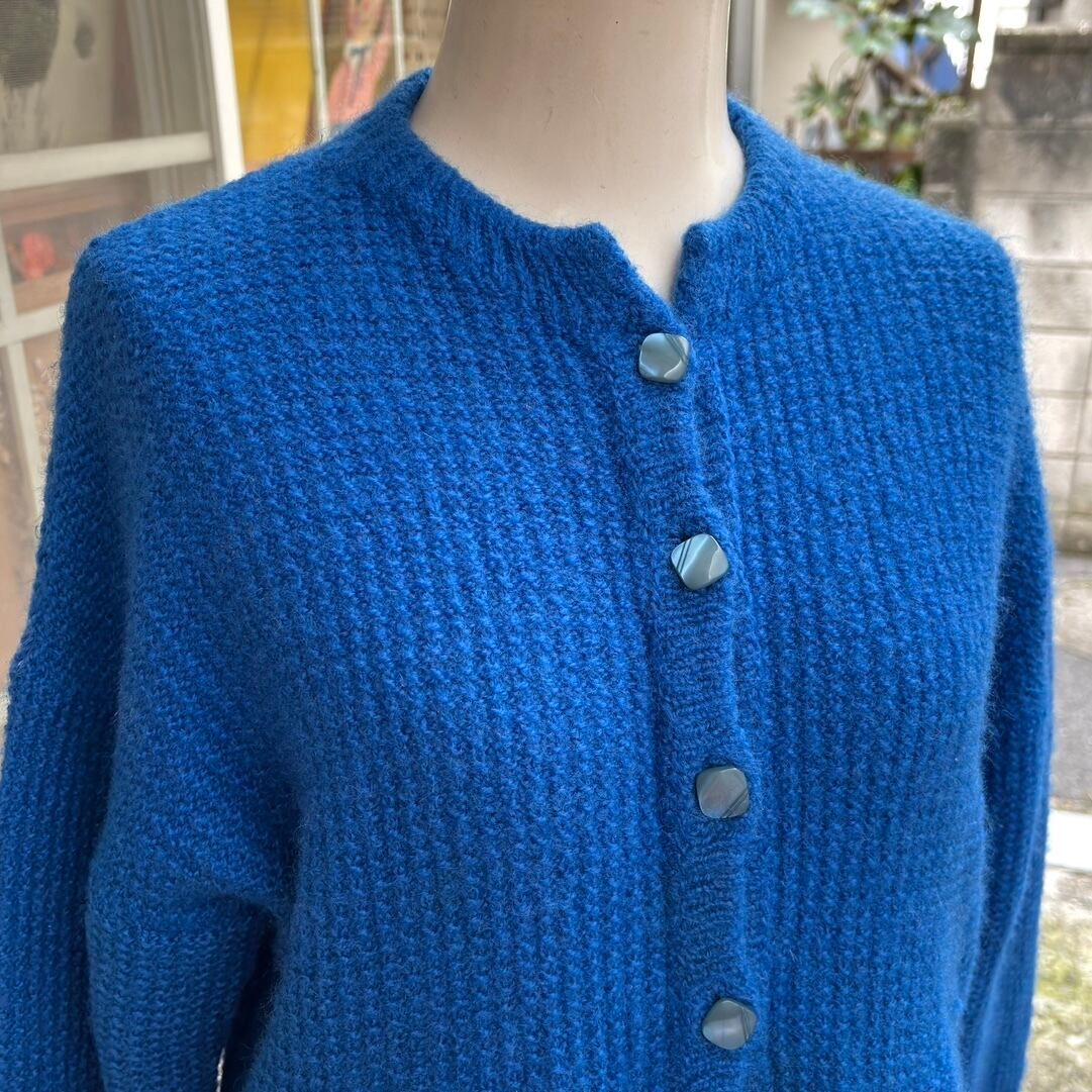 70'S USA Vintage Blue design sleeves knit cardigan。