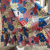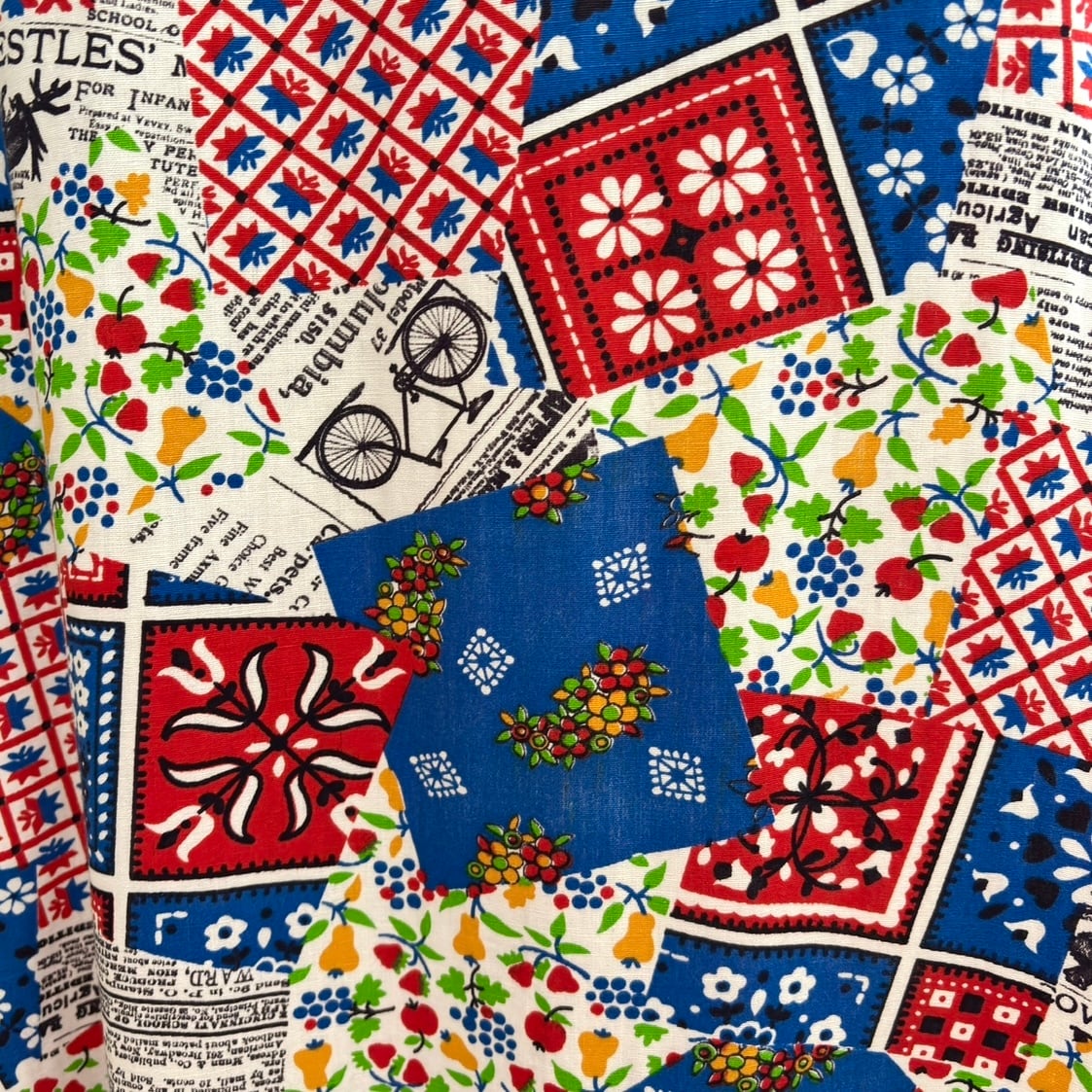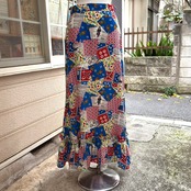 70'S USA Vintage fruits&flower&newspaper patchwork printed skirt。
