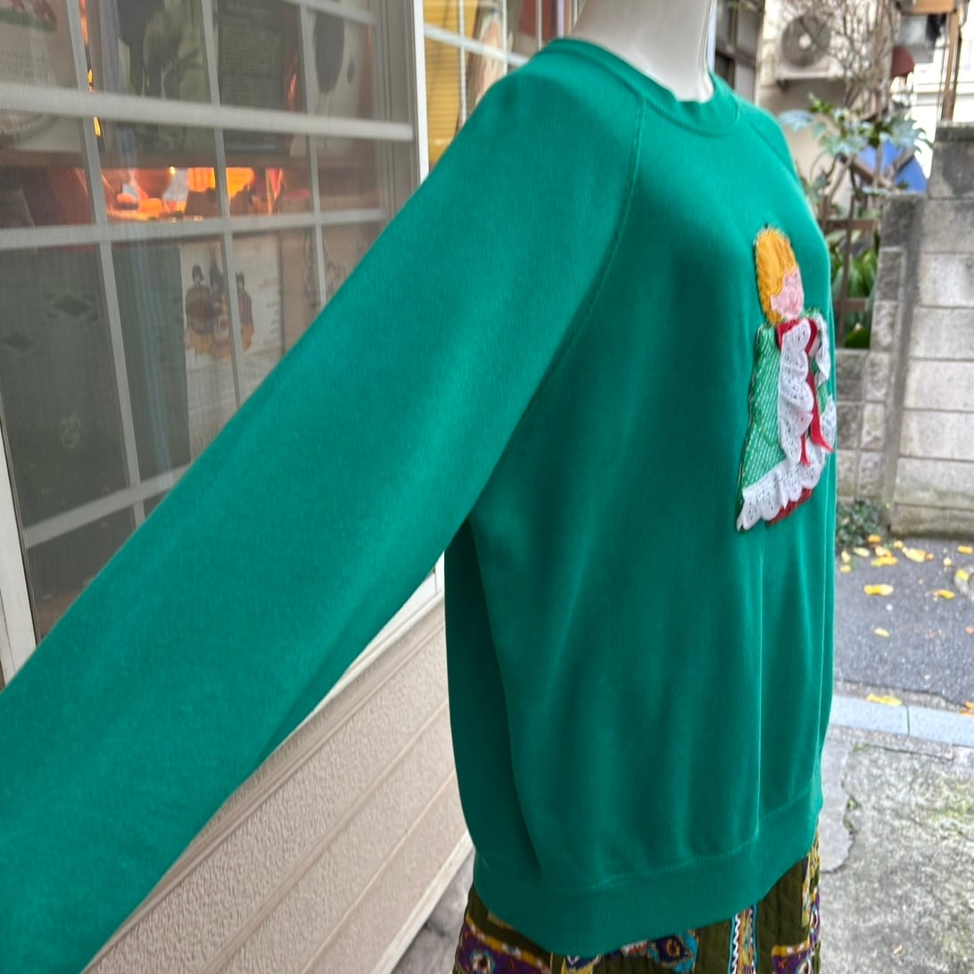 ヴィンテージ ならではなグリーンカラーのボディーにクリスマスガールのパッチがとっても可愛い1着です。