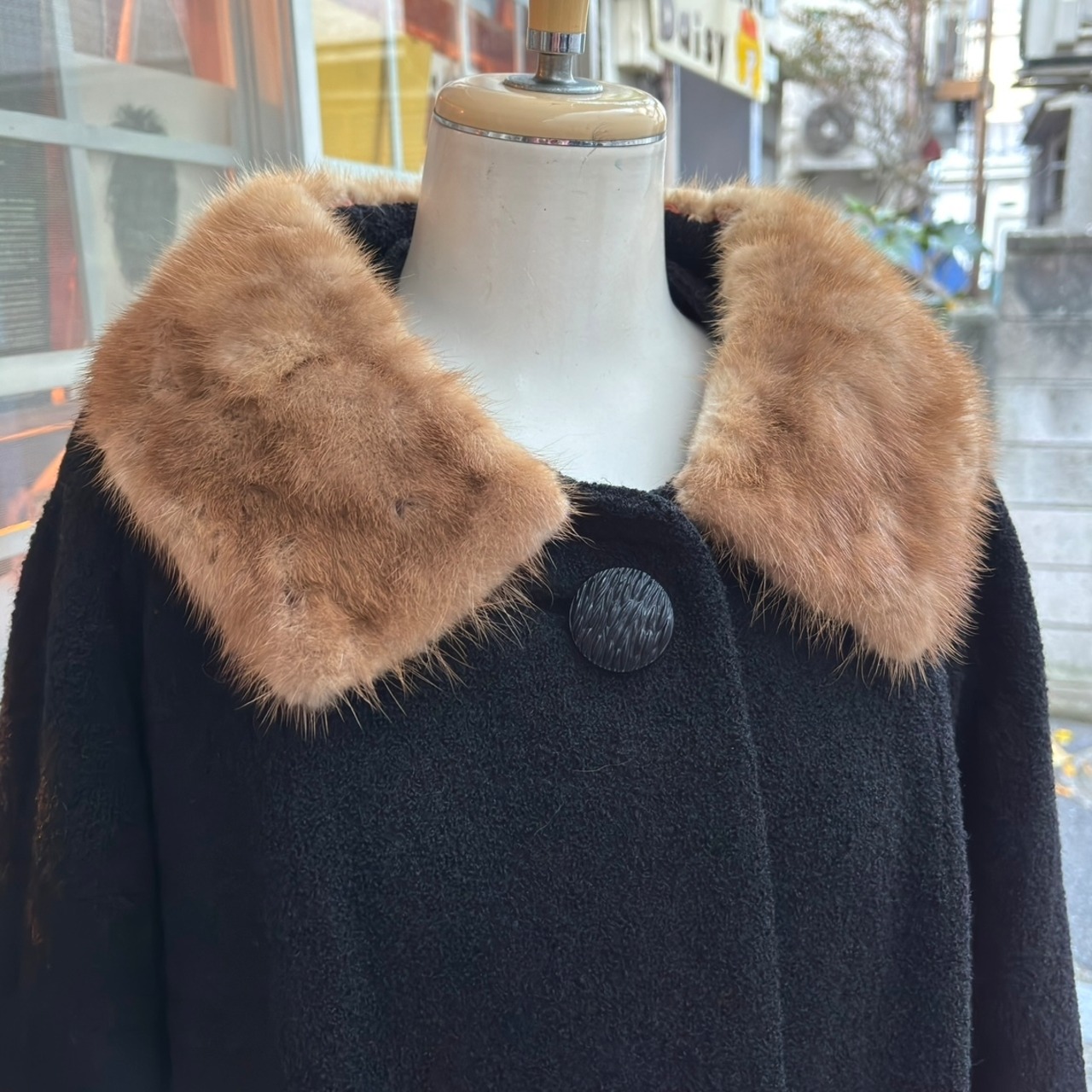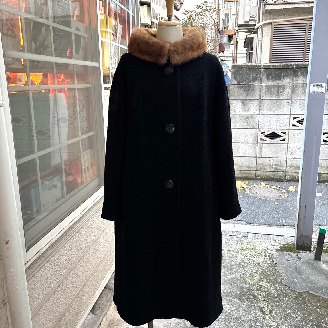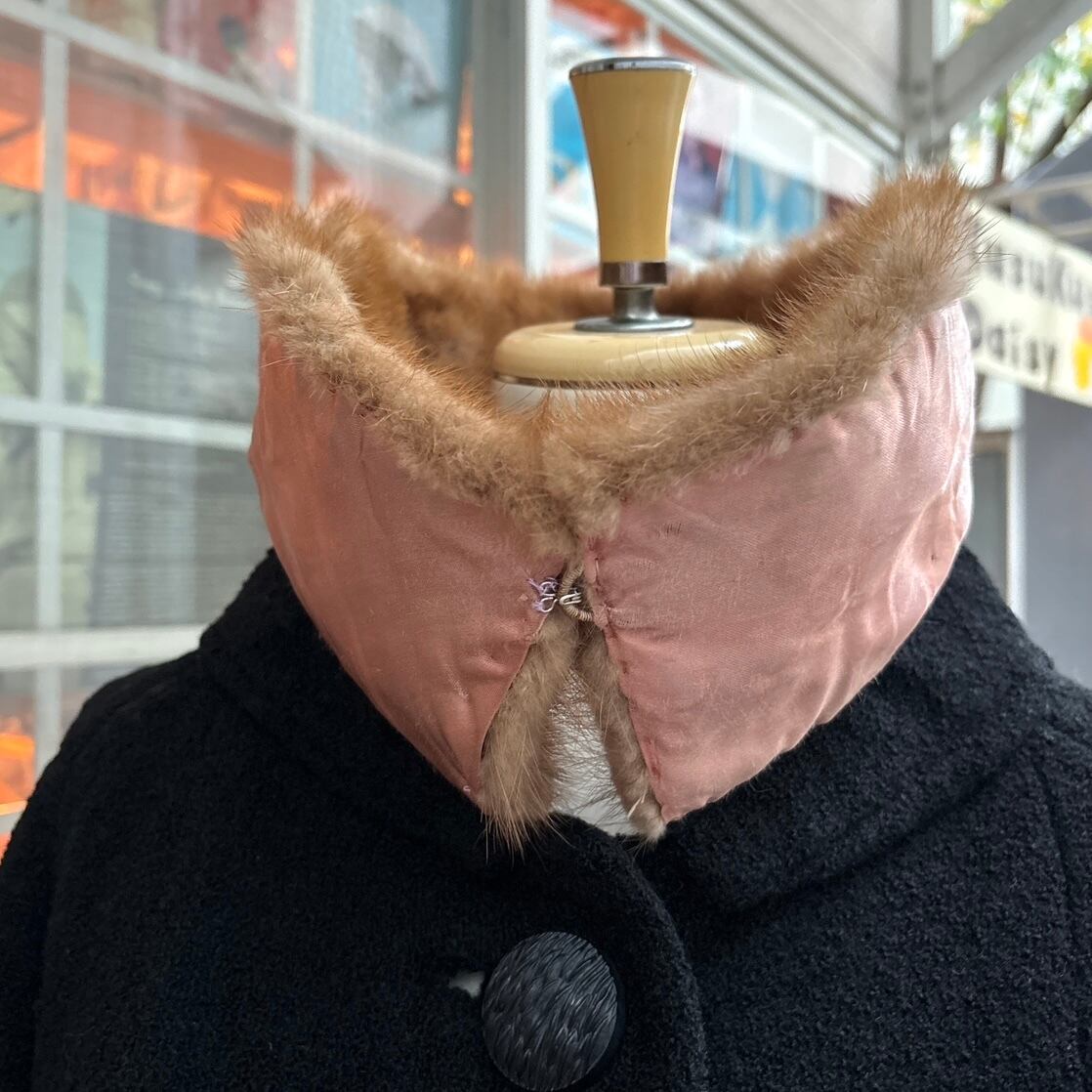 ブラックカラーのヴィンテージならではなウール地やミンクファーの襟がとっても可愛い1着です。