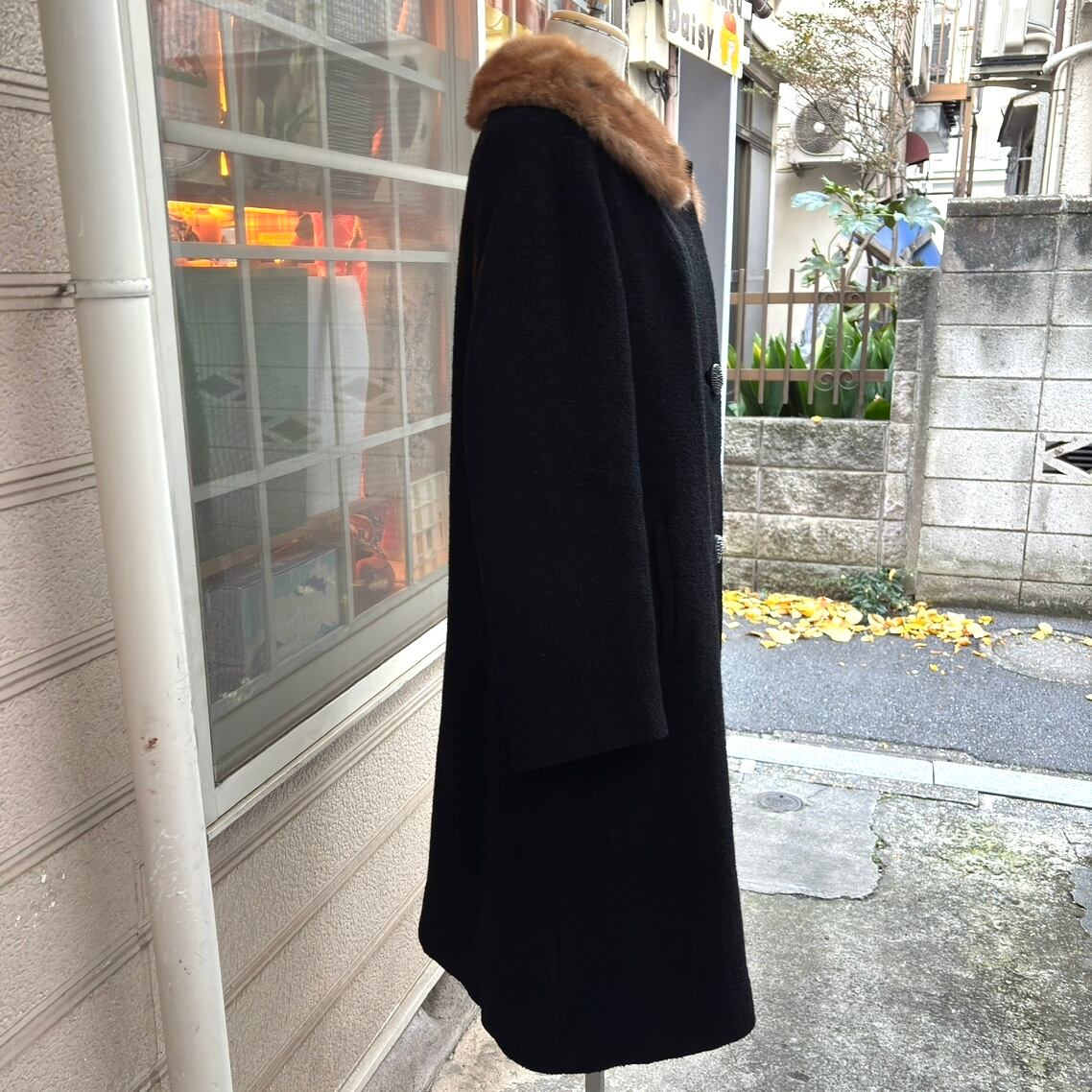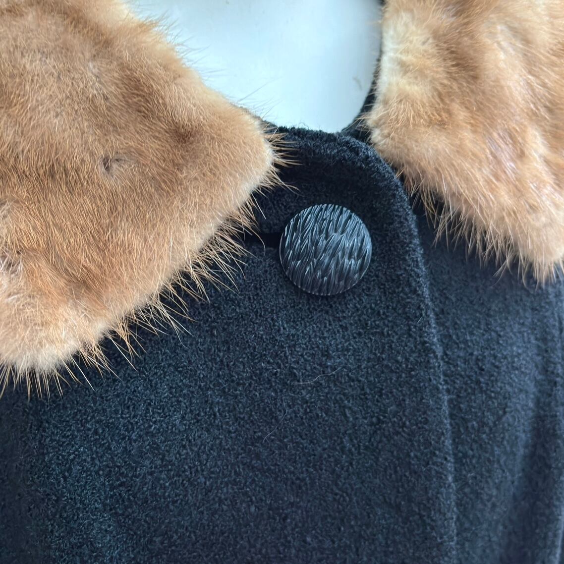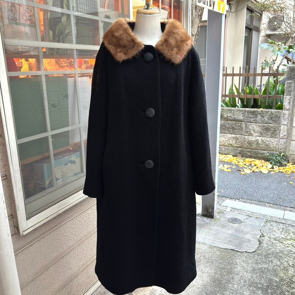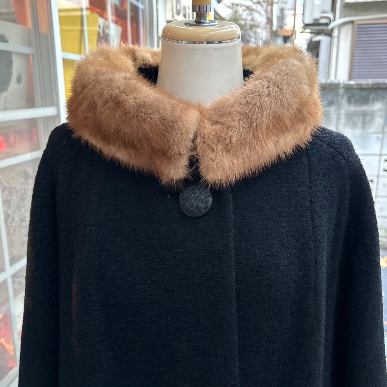 ブラックカラーのヴィンテージならではなウール地やミンクファーの襟がとっても可愛い1着です。