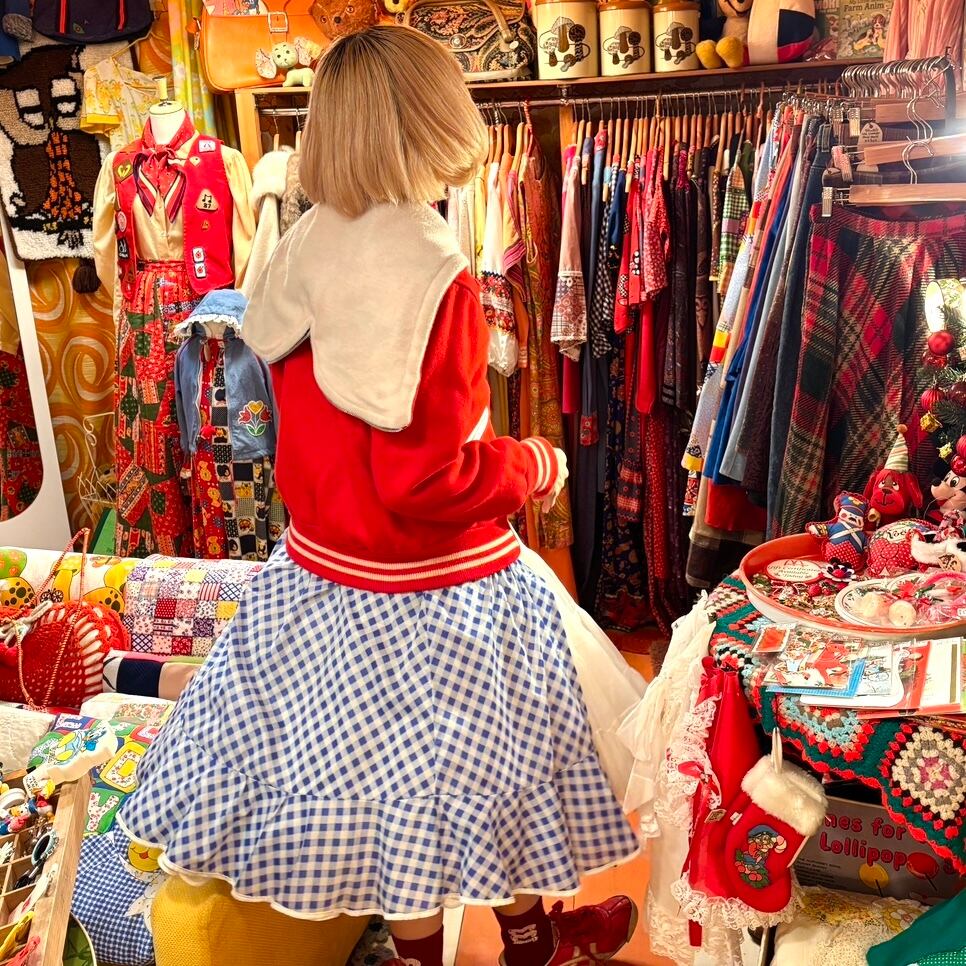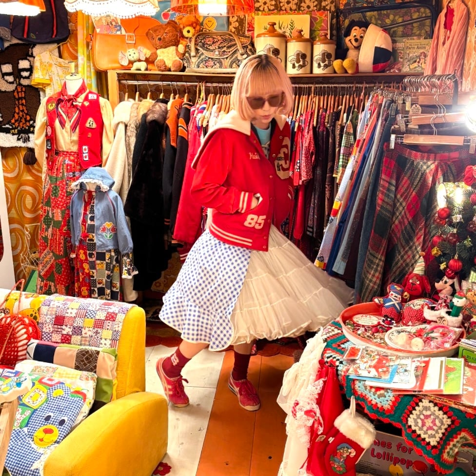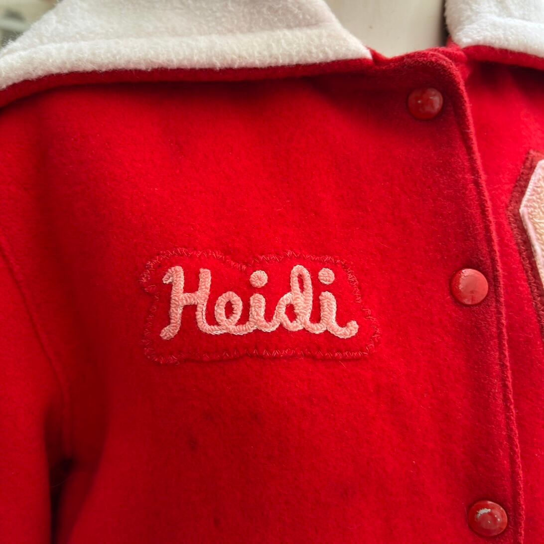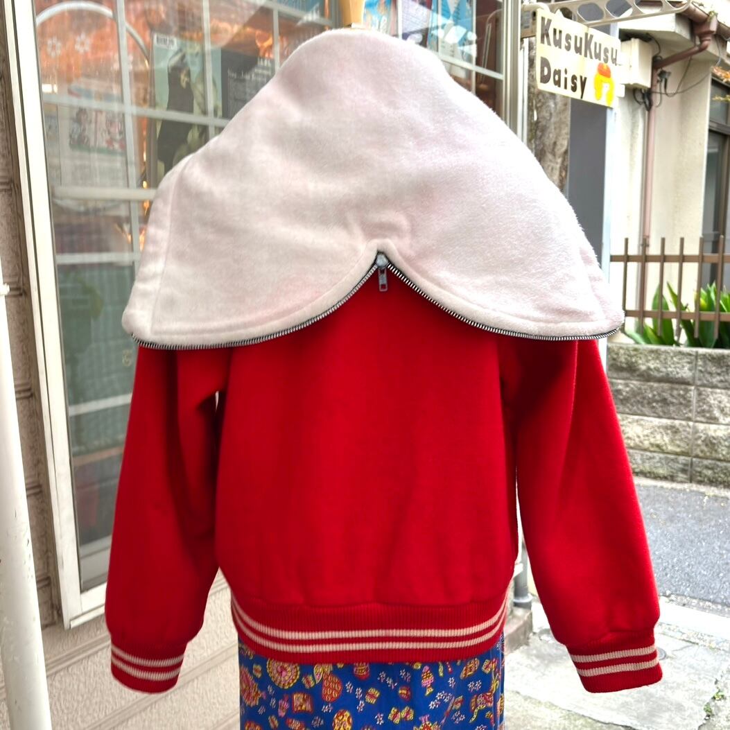 ヴィンテージ ならではな発色のレッドカラーのボディーにホワイトのカラーリングがとっても可愛い1着です。