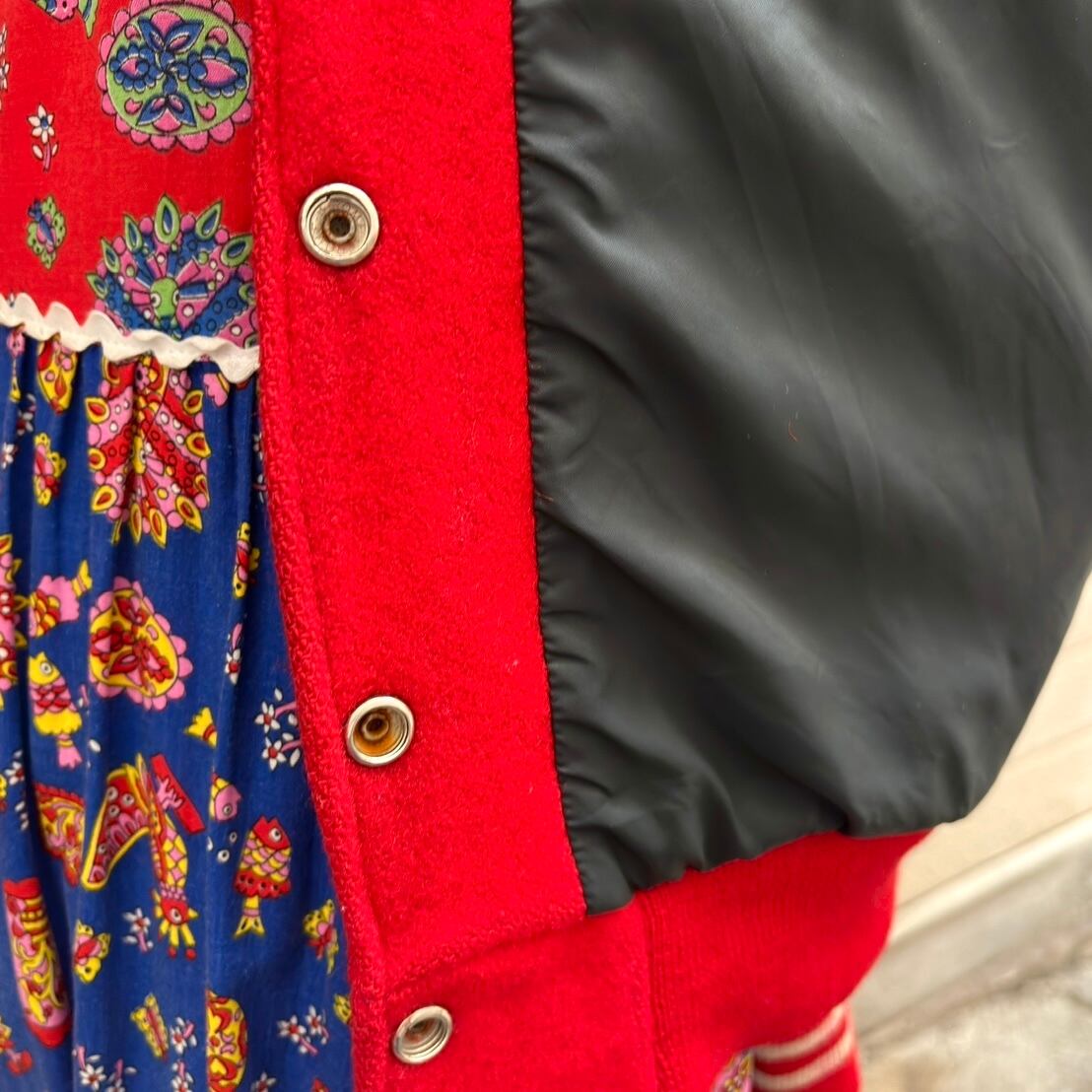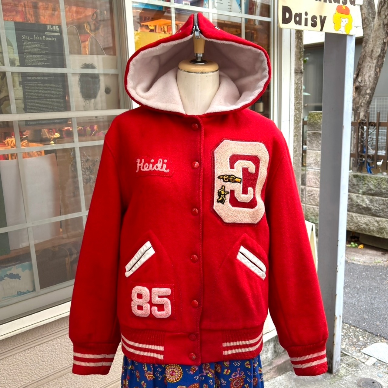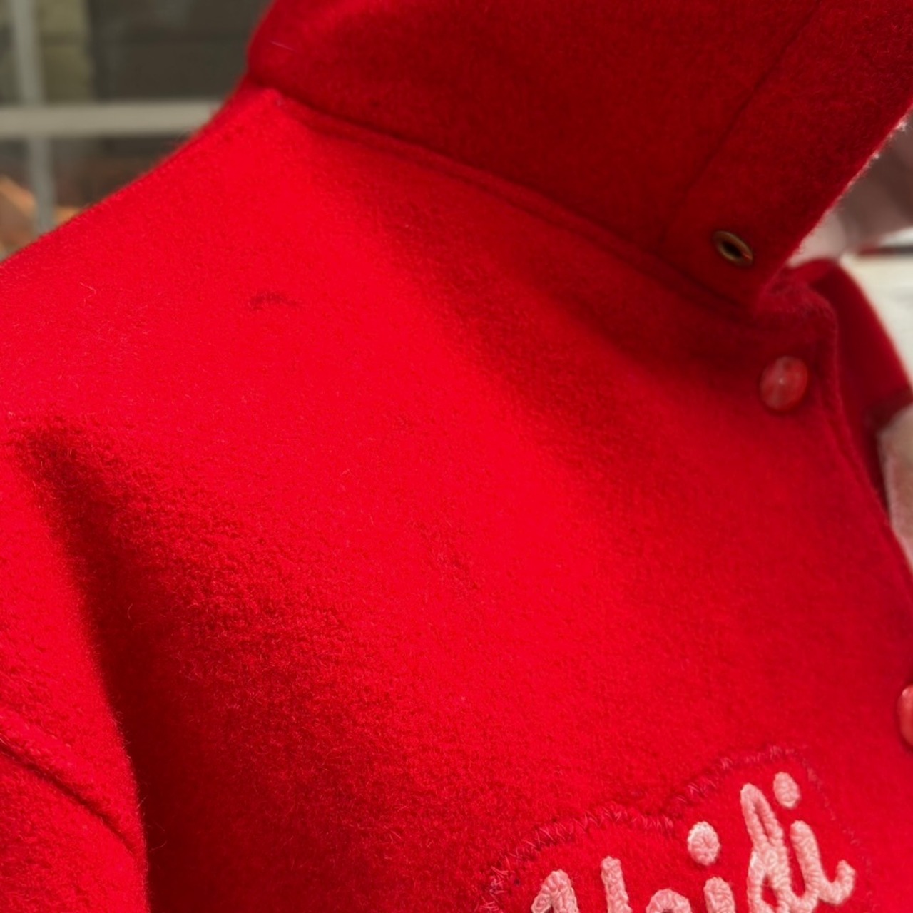 ヴィンテージ ならではな発色のレッドカラーのボディーにホワイトのカラーリングがとっても可愛い1着です。