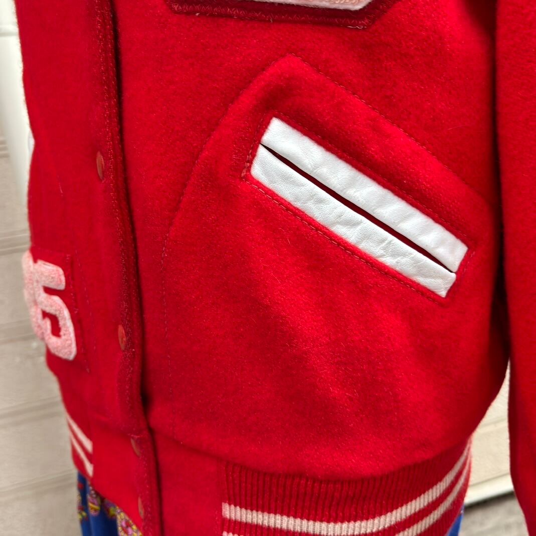 袖口や裾のリブのホワイトのラインやフロントの大きなレタードワッペンやナンバーのワッペンも雰囲気があって、とっても可愛いです。