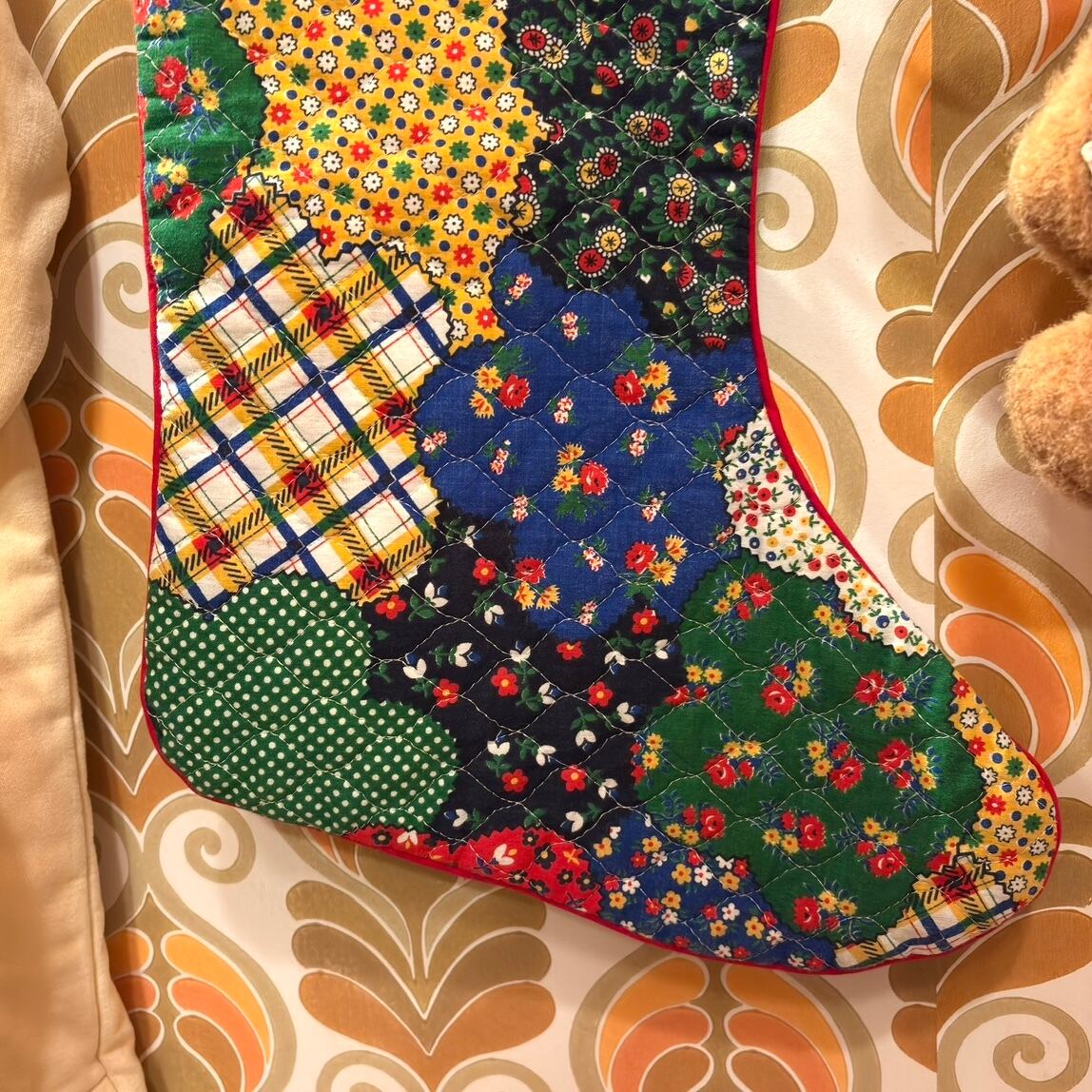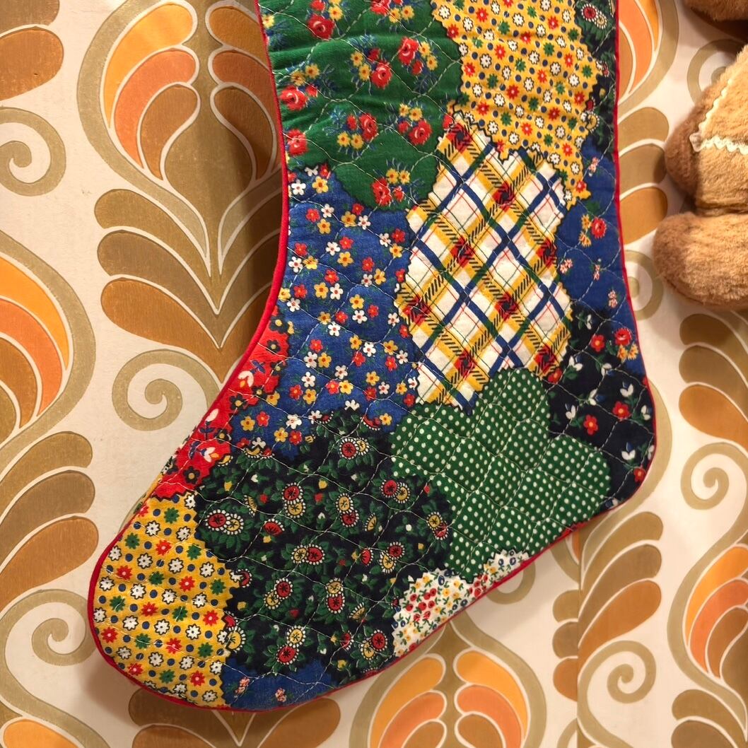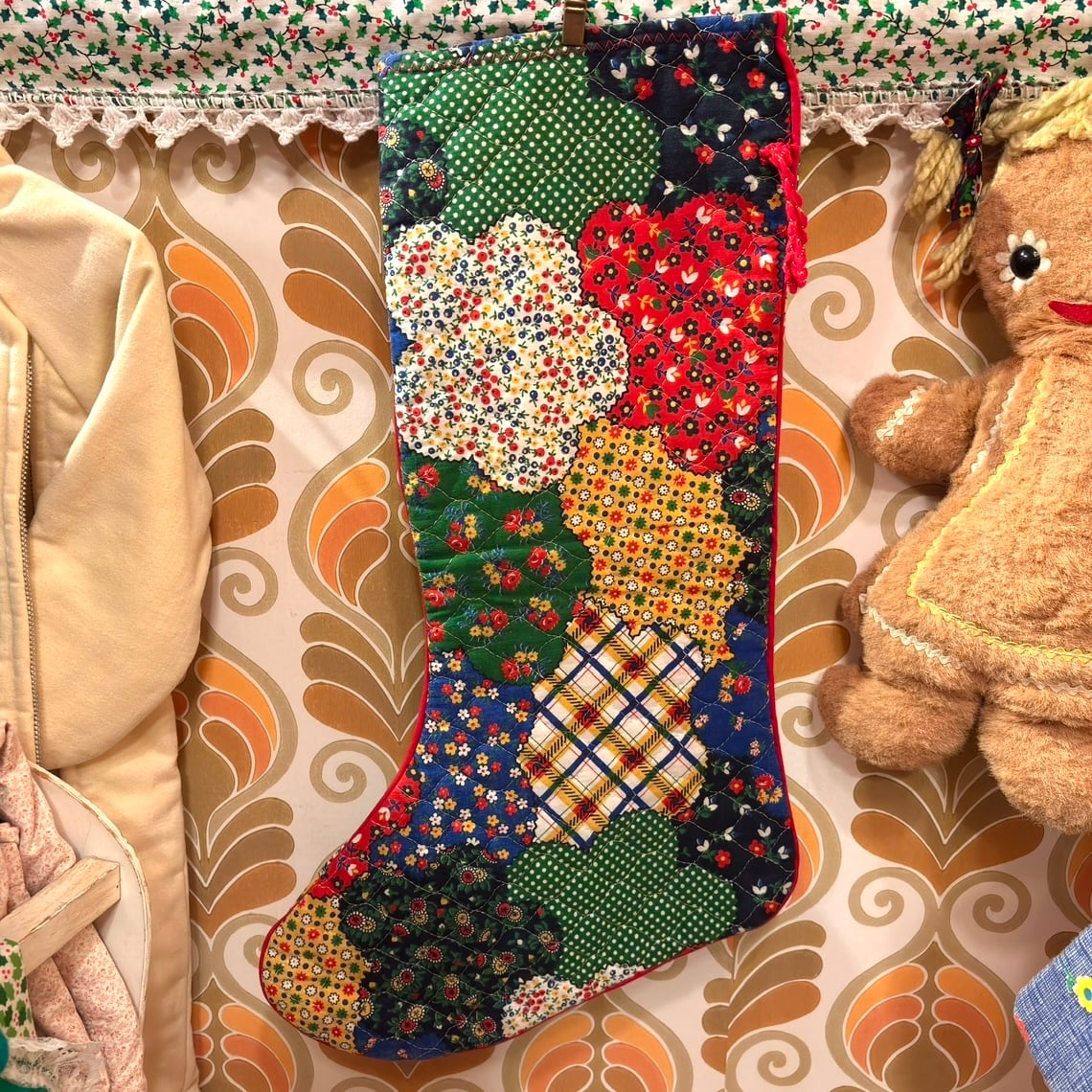 70年代 ヴィンテージ パッチワーク柄 キルティング クリスマスソックスです。