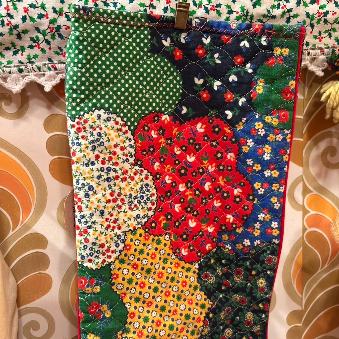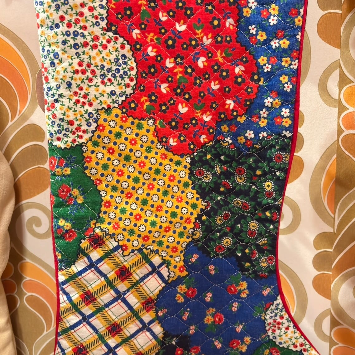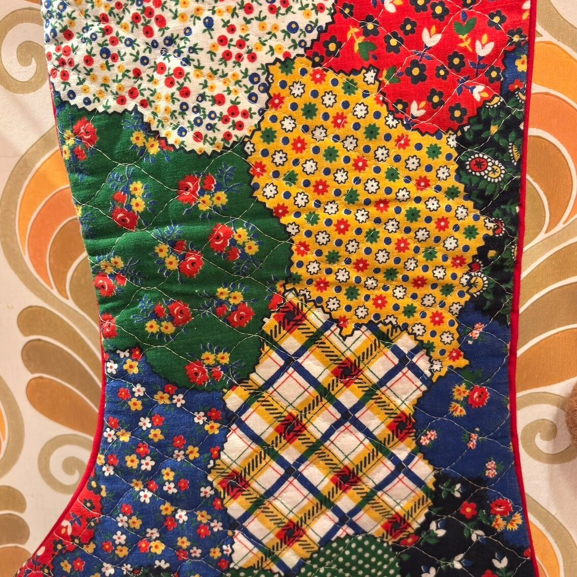 70年代 ヴィンテージ パッチワーク柄 キルティング クリスマスソックスです。