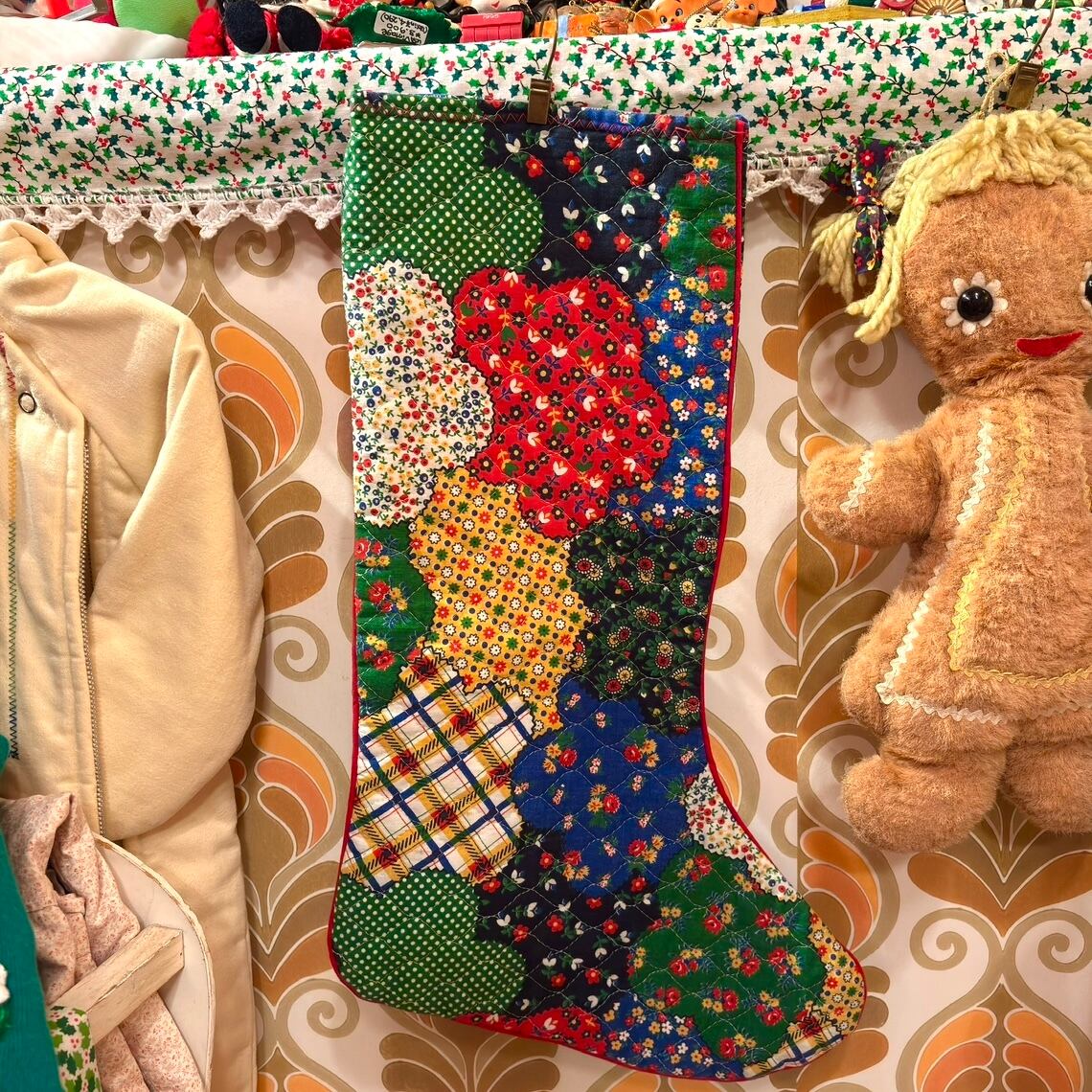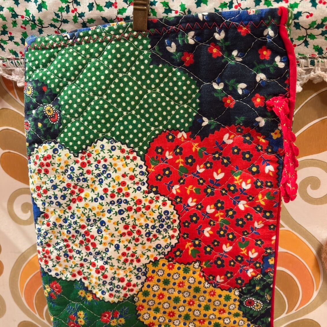 Vintage patchwork pattern quilting Christmas stocking