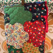 フラワーやピンドット、チェック模様のカラフルなパッチワーク柄がとっても可愛いアイテムです。