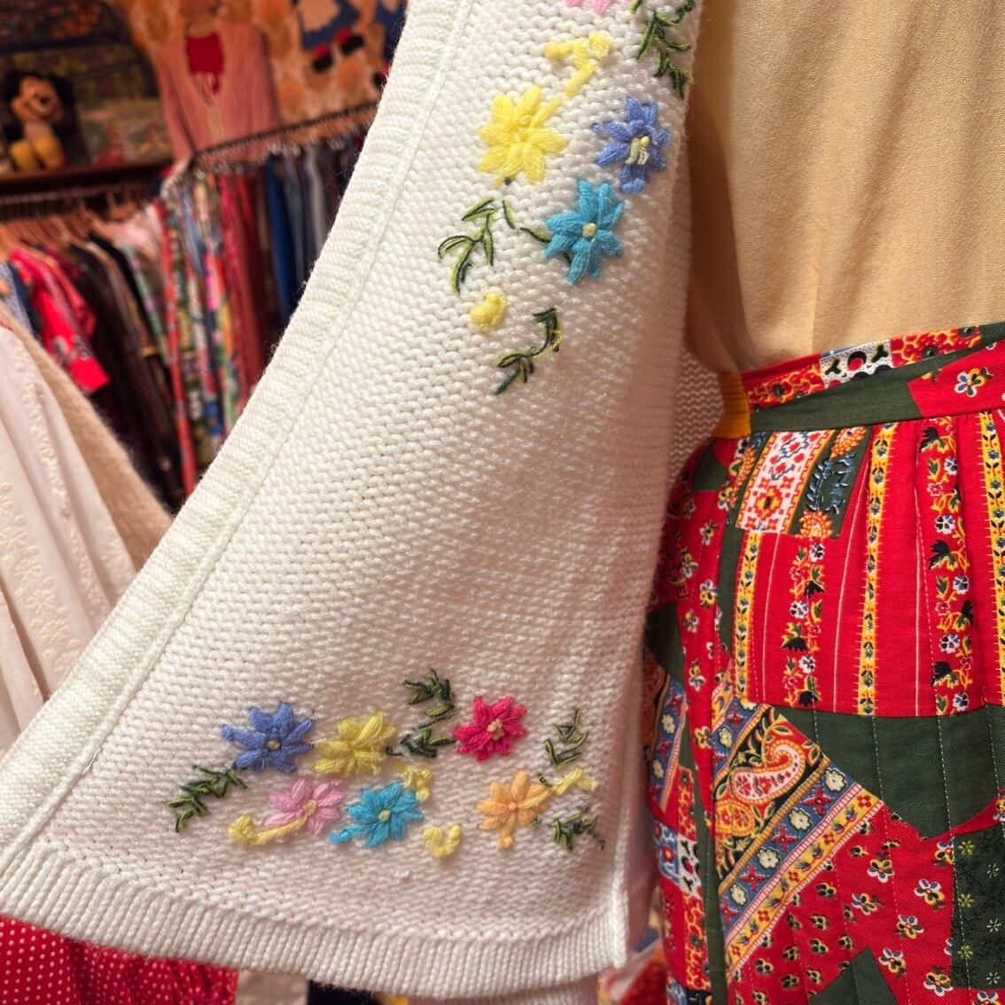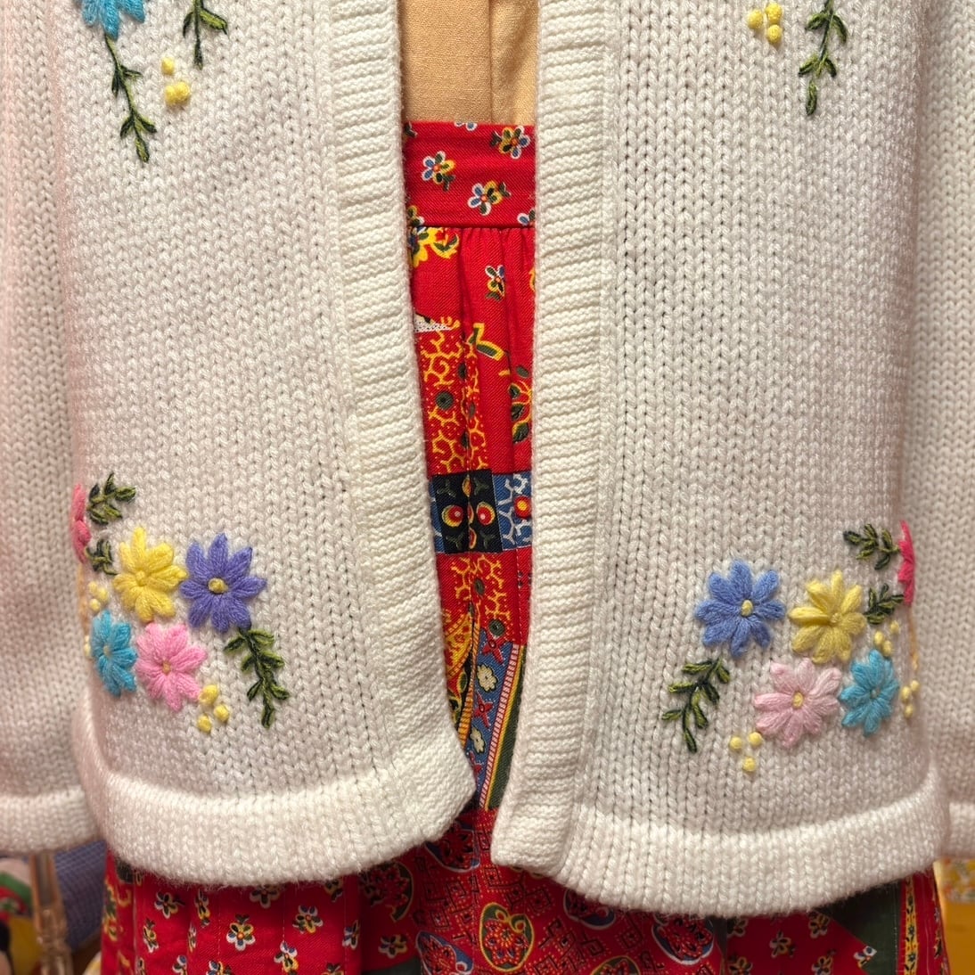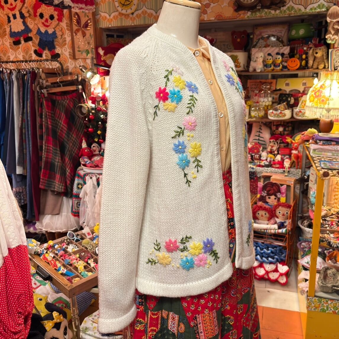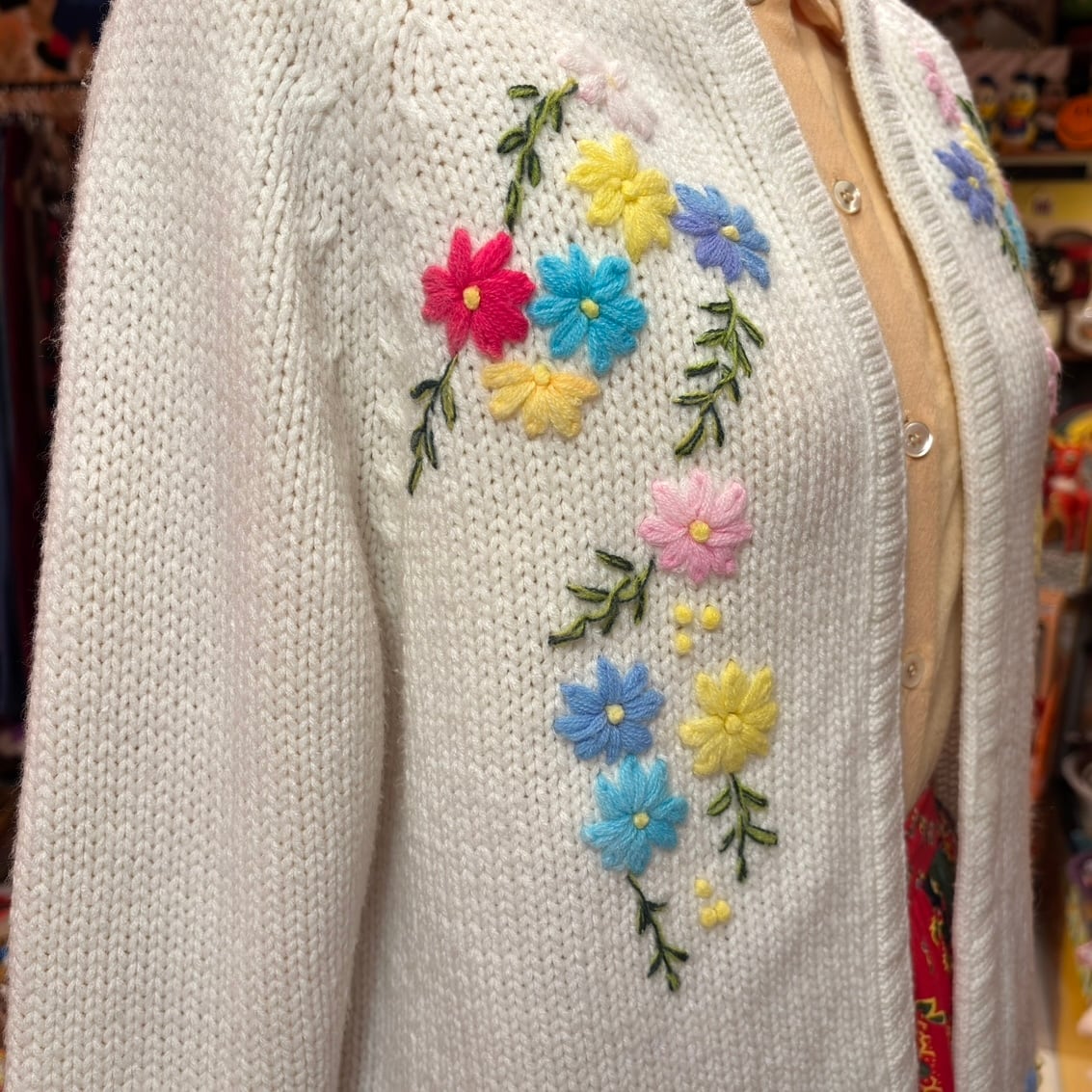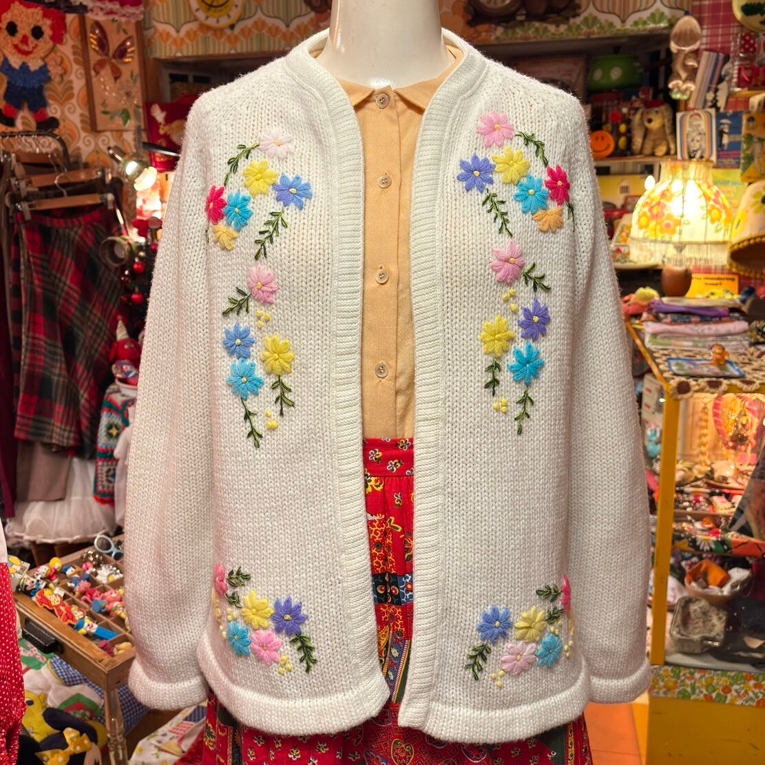 60年代から70年代 ヴィンテージ 当時のハンドメイド1点もの フラワー刺繍 カーディガンです。