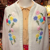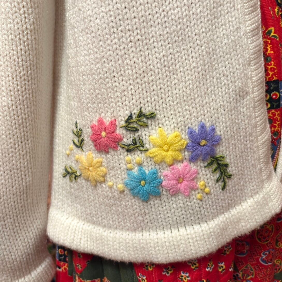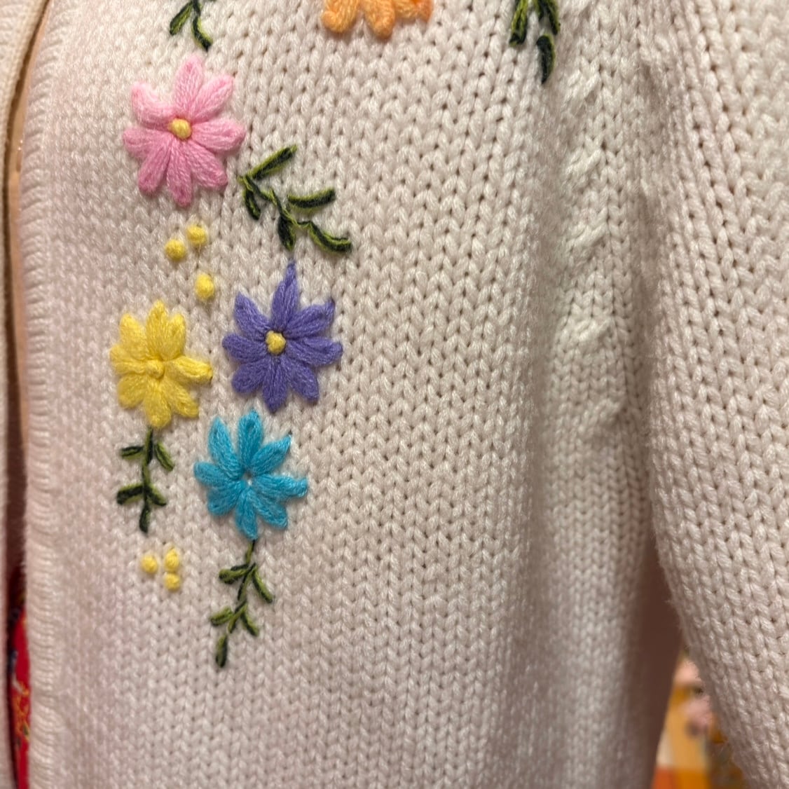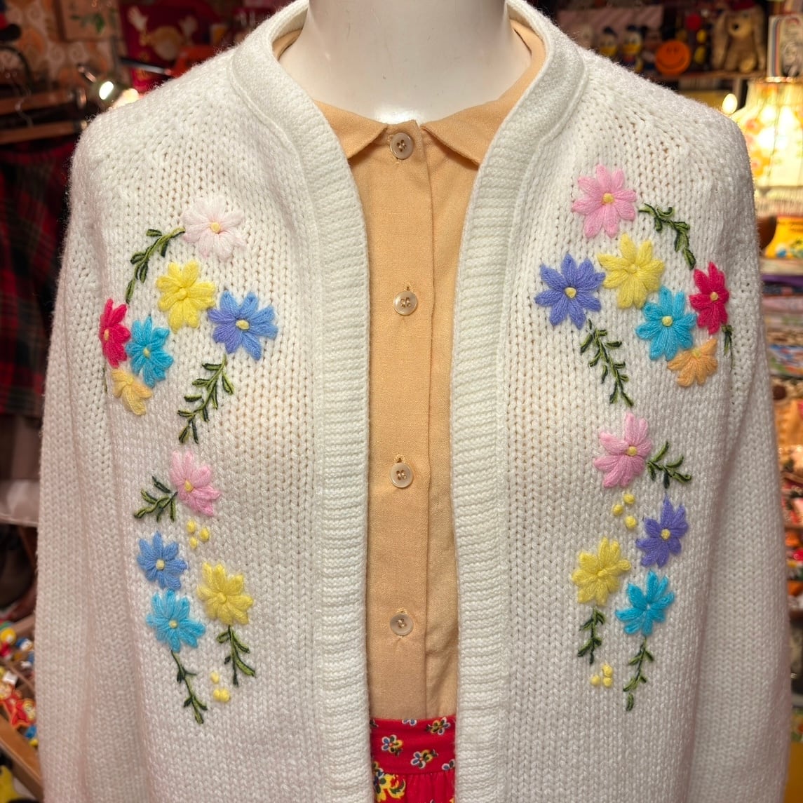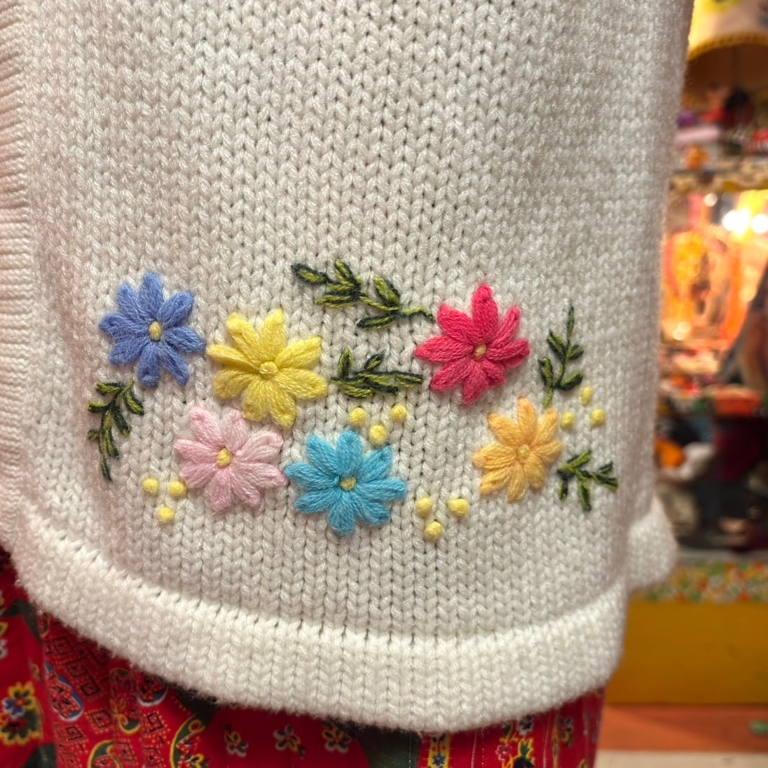 60年代から70年代 ヴィンテージ 当時のハンドメイド1点もの フラワー刺繍 カーディガンです。