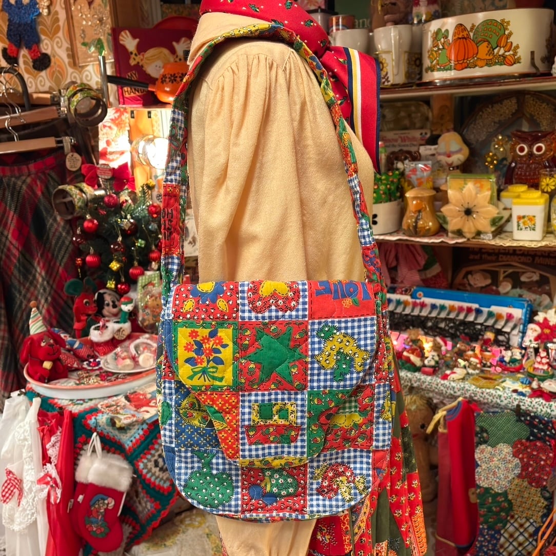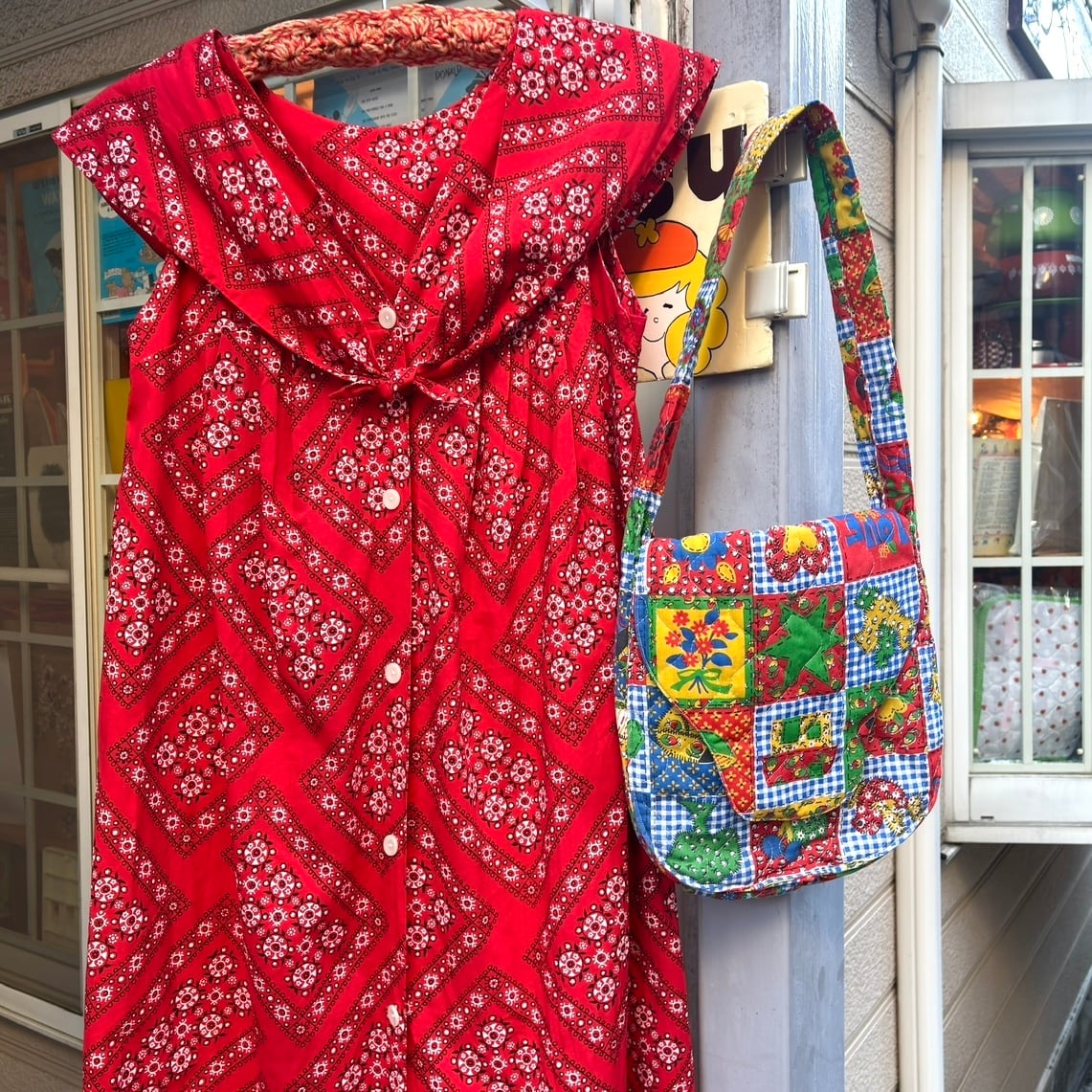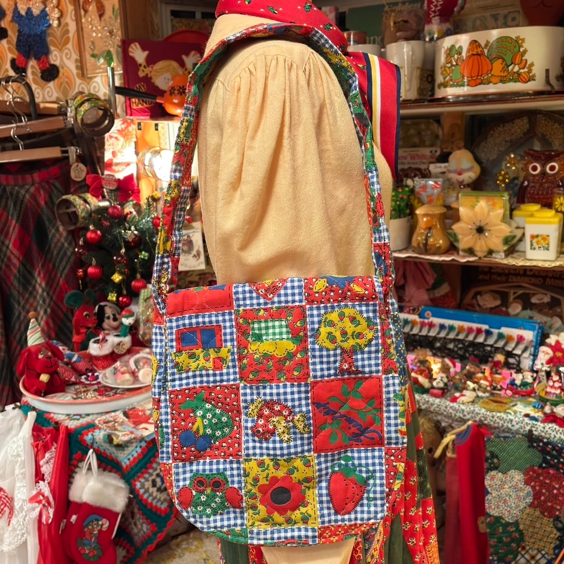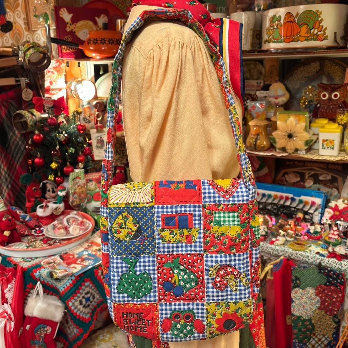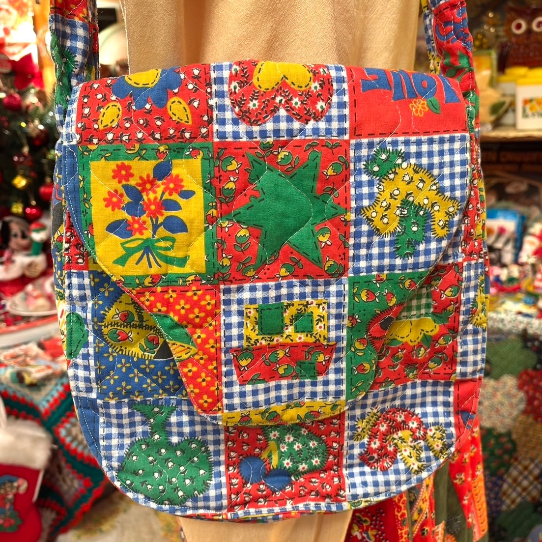 70年代ならではな生地感やパッチワーク柄で、お出かけするたびにhappyな気持ちになれそうなバッグかと思います。